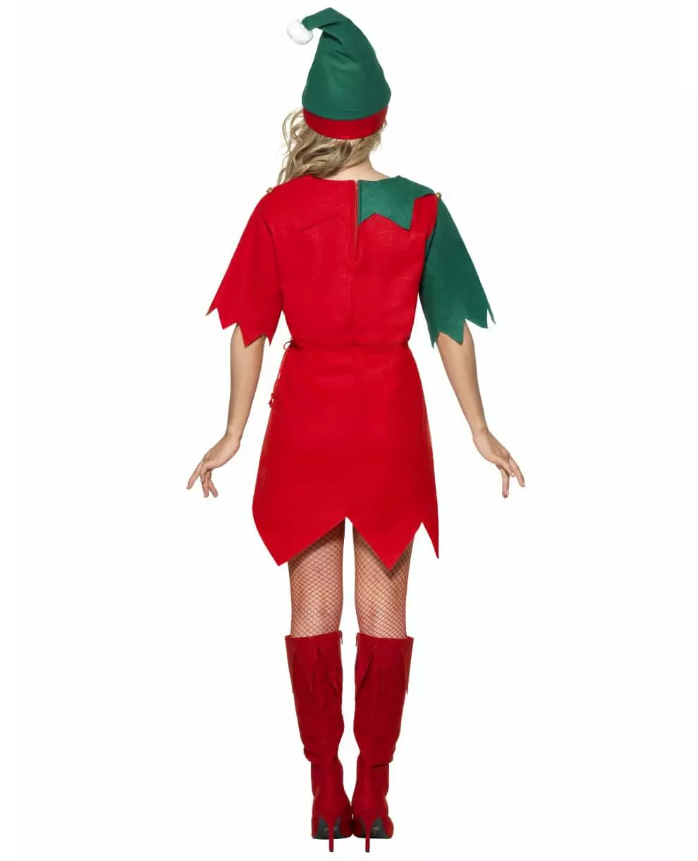 Nydelig som julenisse! Dette julenissekostymet for kvinner består av en tettsittende kjole og en hatt. Antrekket er i tofarget rødt og grønt. Kjolen, som spiller på en femfarget grønn og rød farge, er blondekantet i kragen, ermene og bunnen. Den er dekorert med små bjeller i kragen for å lage maksimal lyd. Denne kjolen er ledsaget av en grønn og rød alvelue, som også har en fluffy pompong på enden. Hold julemagien i live med dette slip-on-alvekostymet til alle utkledningsanledninger, spesielt jul!. Inkludert tilbehør: Hatt Kjole Materiale: 100 % polyester Stell: Håndvask