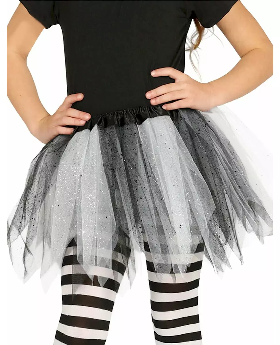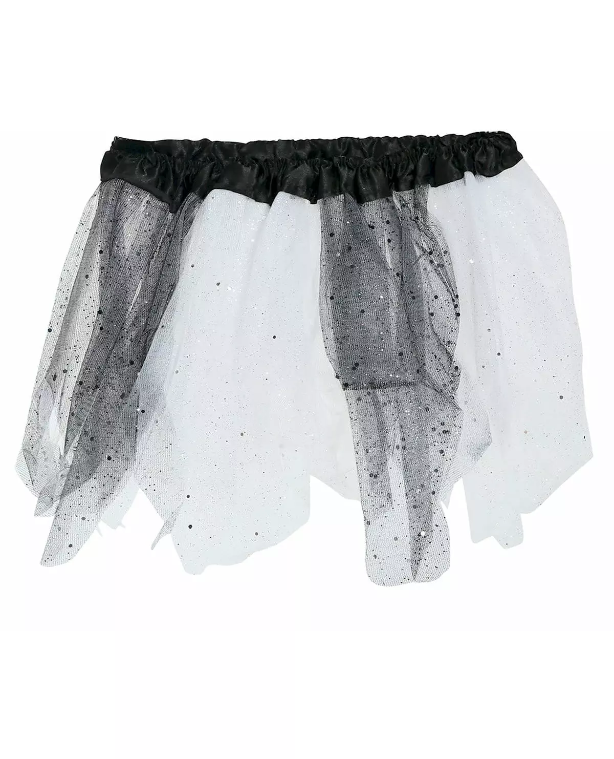 Det essensielle og allsidige tilbehøret! Denne tutuen for jenter, som selges enkeltvis, har elastikk i livet for å tilpasse seg datterens midjemål. Denne tutuen er laget av flere tyllpaneler med kamskjellformede kanter som overlapper hverandre for å danne en tutu i vekslende hvitt og svart, og dekorert med paljetter for en glitrende effekt. Denne tutuen vil være ideell for å fullføre forskjellige forkledninger i svart-hvitt-stil. Til karneval, Halloween, en bursdagsfest eller til og med et skole- eller danseshow! Inkludert tilbehør: Tutu Stell: Håndvask