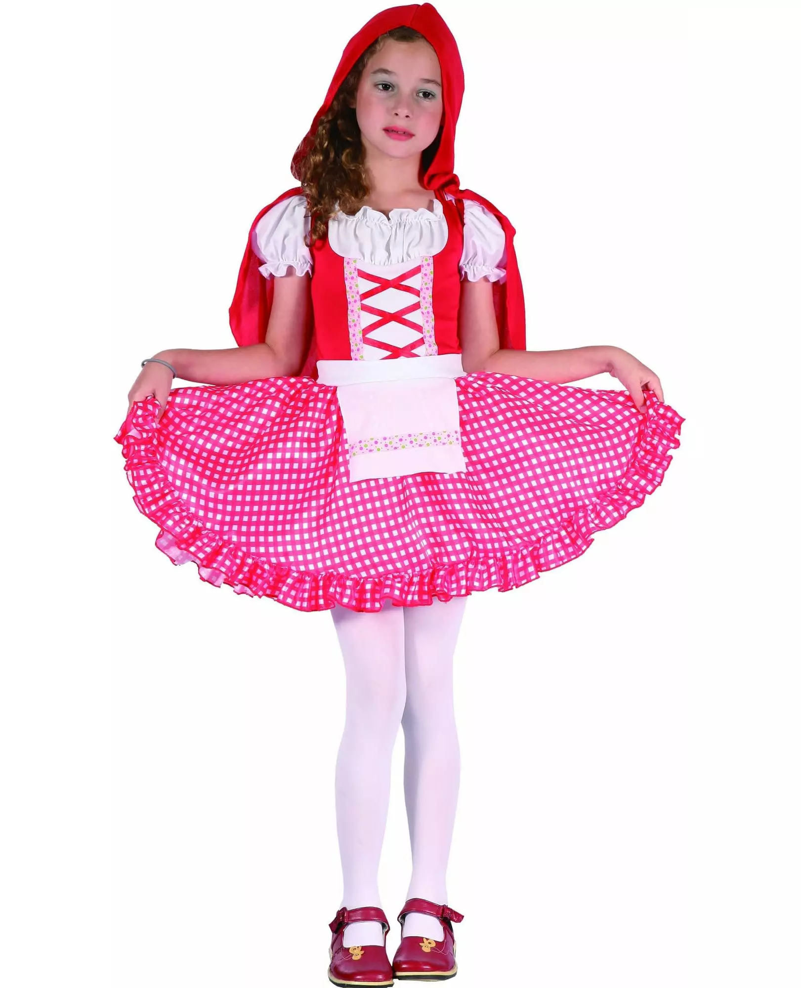 Vokt dere for ulven som lusker rundt i skogen! Dette Rødhette-kostymet for jenter består av en kjole og en kappe med hette (strømpebukser og sko er ikke inkludert). Kjolen er rød overdel med korte, hvite puffermer. Det er en rød, fusket snøring foran. Kjolen har borrelås øverst bak. Nederdelen av kjolen er trykt med røde og hvite ruter. Et lite hvitt forkle med et grønt og rødt mønstret bånd nederst er også tilstede i livet. En liten rød kappe med hette er festet til kjolen med borrelås. Dette kostymet vil være perfekt for å leke den søteste Rødhette på karnevalet. Inkludert tilbehør: Kjole med hette. Materiale: 100 % polyester. Pleie: Håndvask.