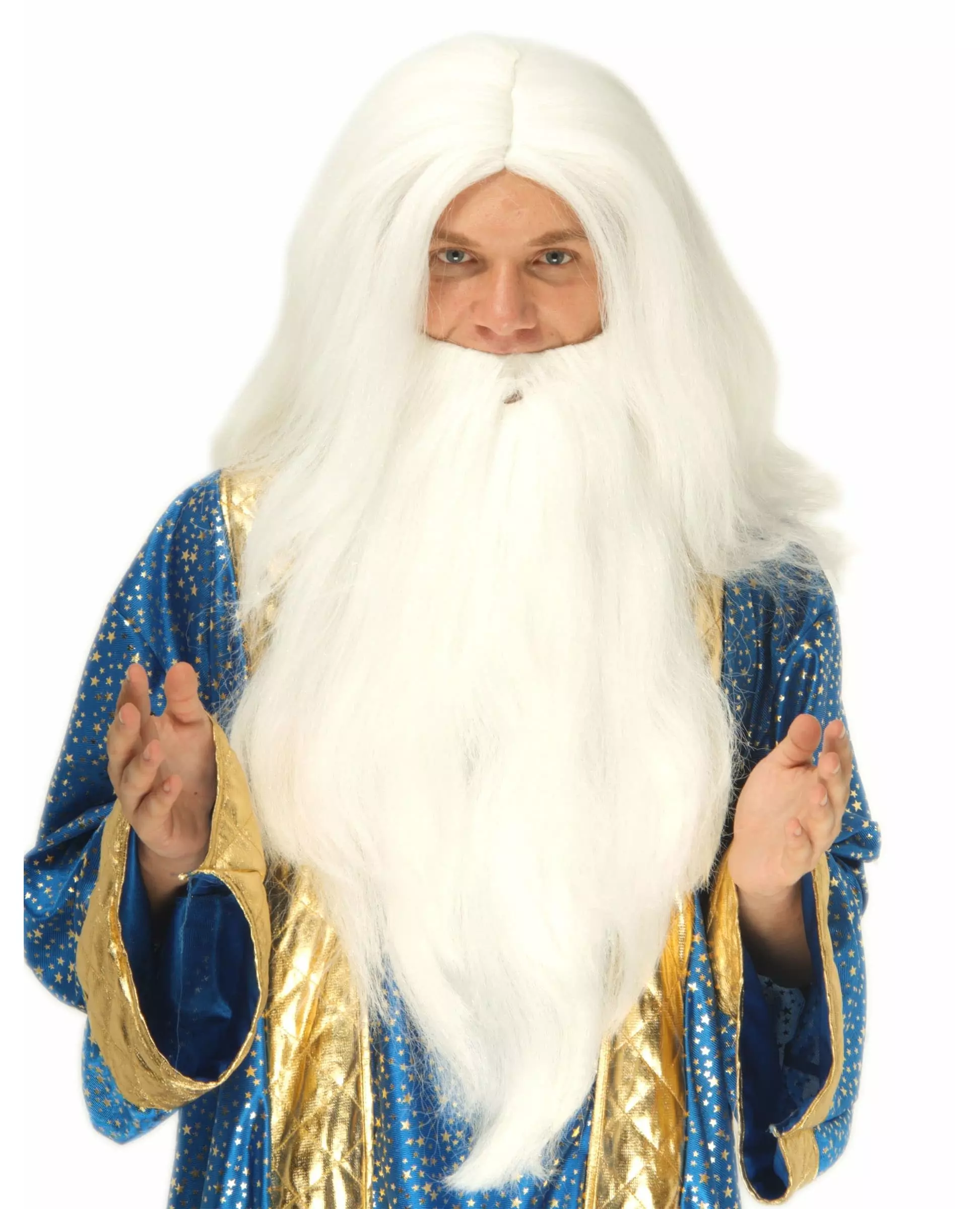 Legemliggjør en ekte trollmann med denne parykken og skjegget! Denne trollmannsparykken er for menn. Den er laget av hvitt syntetisk hår. Sistnevnte er rett og måler omtrent 55 cm. Denne parykken kommer med et langt hvitt skjegg som måler omtrent 60 cm. Det vil holde seg på ansiktet ditt takket være en strikk. Dette settet vil være perfekt for å fullføre kostymet ditt og legemliggjøre en ekte trollmann under kostymefester. Inkludert tilbehør: Parykk Skjeggmateriale: Syntetisk 100 % polyester 100 % polyester
