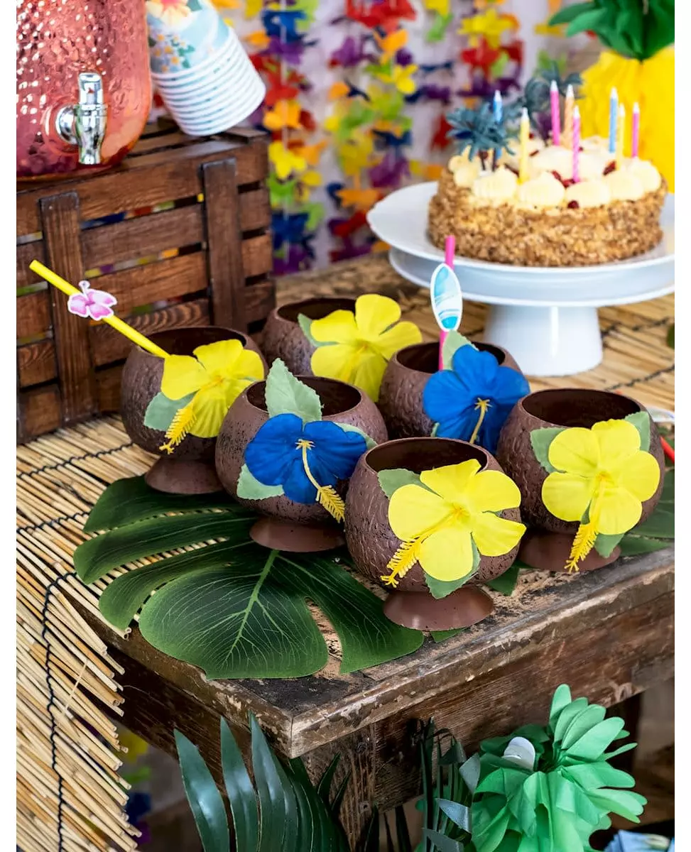 En fin kokosnøtt! Denne hawaiiske bollen er formet som en kokosnøtt (blomst ikke inkludert). Selges enkeltvis, måler den omtrent 10 cm i høyden og 11 cm i bredden. Denne kokosbollen vil være ideell for å fullføre det tropiske bordet ditt under hawaiiske kvelder. Inkludert tilbehør: 1 kokosbolle Materiale: Plast