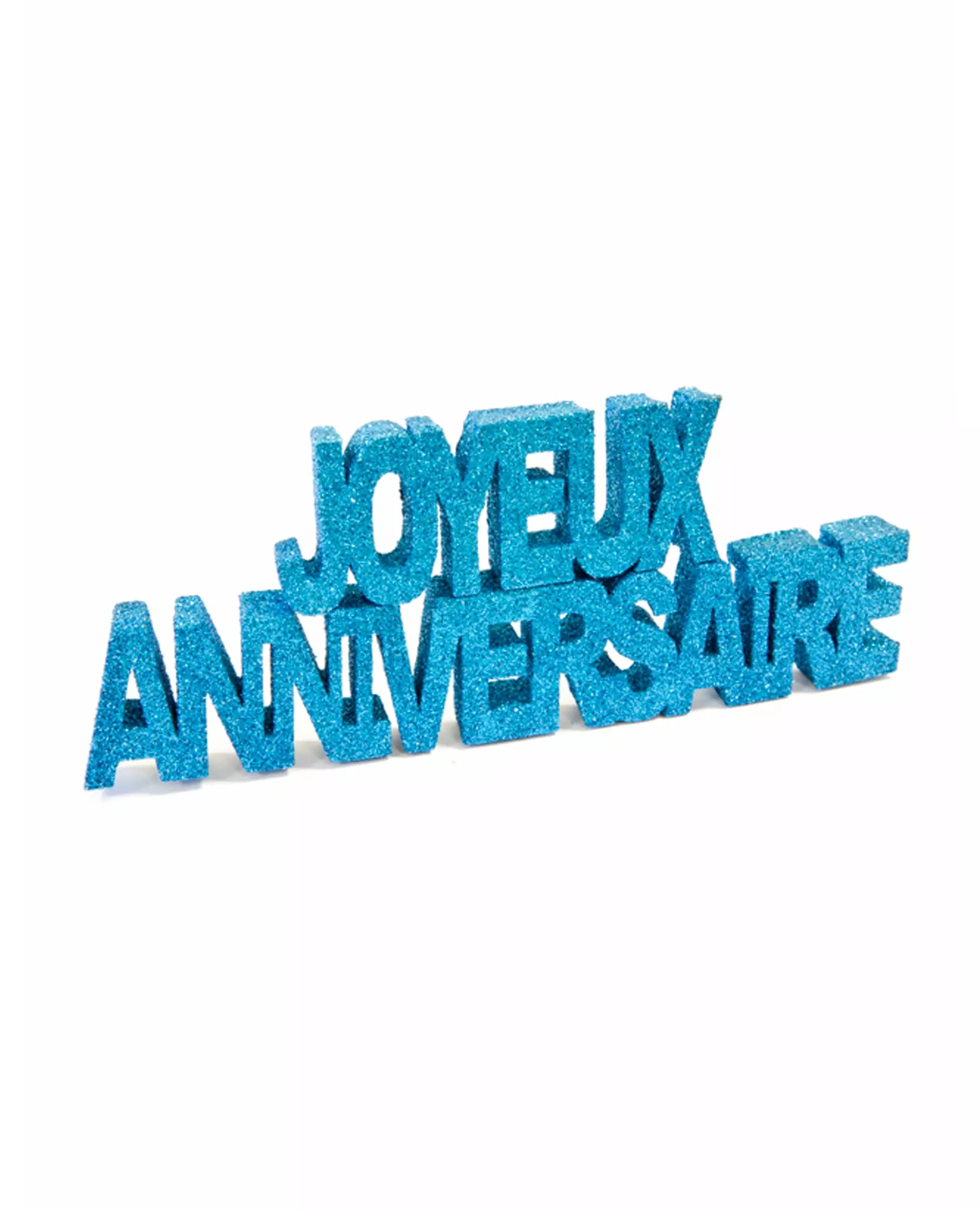 Gratulerer med dagen! Dette settet inneholder en fin borddekorasjon med teksten «Gratulerer med dagen», helt dekket av turkis glitter. Ordene er avtakbare, slik at du kan lage en annen dekorasjon etter eget ønske: du kan legge dem oppå eller justere dem. De måler omtrent 9 x 3,5 x 1,5 cm («gratulerer») og 19 x 3,5 x 1,5 cm («bursdag»). Og for mer personlig tilpasning kan du blande fargene for å lage en unik dekorasjon! Denne borddekorasjonen vil være ideell for bursdagsfesten din! Inkludert tilbehør: 1 borddekorasjon Materiale: Isopor