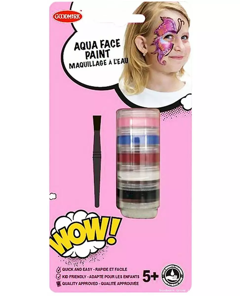 Ikke glem sminken! Dette sminkesettet er vannbasert og inneholder 5 stablede farger. 3g sminkepottene er rosa, blå, rød, hvit og svart. Settet inneholder også en børste og en svamp. Dette vannbaserte sminkesettet er perfekt for å pynte seg på karneval eller temafester! Ingredienser: Svart, blå, rød: INGREDIENSER: Ricinus Communis frøolje, glyserylstearat, PEG-100 stearat, paraffinum liquidum, ceteareth-20, cera Alba, sorbitanlaurat, polysorbat 20, fenoksyetanol, sorbinsyre, tokoferol. (+/-): CI 77891, CI 77499, CI 77491, CI 77492, CI 74160, CI 73360, CI 45380, CI 42090, CI 19140, CI 15880, CI 0, CI 0,0 rosa: INGREDIENSER: Ricinus Communis frøolje, glycerylstearat, PEG-100stearat, Paraffinum Liquidum, Ceteareth-20, sorbitanlaurat, Cera Alba, polysorbat 20, fenoksyetanol, sorbinsyre, tokoferol. (+/-): CI 77891, CI 77499, CI 77007, CI 75470, CI 74160, CI 45380, CI 19140, CI 15850.. Tilbehør inkludert: 5 sminkepotter 1 børste 1 svamp