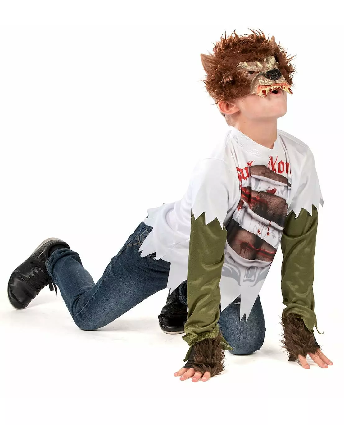 Barnekostymet inkluderer: T-skjorte, 2 votter, halvmaske.