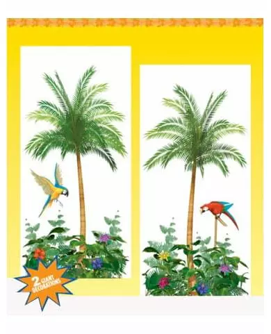 1,65 m x 85 cm! Veggdekorasjoner med palmetre. De måler 1,65 m x 85 cm og selges i sett på 2. De kan brukes både innendørs og utendørs. Perfekt for bruk på en temafest eller en festlig begivenhet som for eksempel en bursdag.