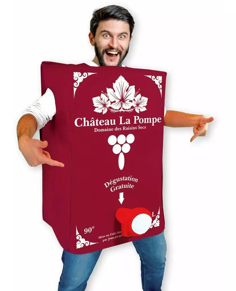 Kom igjen, ta en drink! Dette vinkassekostymet består av en tunika (beret ikke inkludert). Tunikaen er en imitasjon av en rødvinskasse, burgunderfarget med hvite inskripsjoner, som navn og opprinnelse som vanligvis er merket på vinflasker, i dette tilfellet er det en "Château La Pompe" fra Domaine des Raisins sec. En tappekran er plassert i midjehøyde med indikasjonen for gratis smaksprøver markert med pil på tappen. Dette humoristiske kostymet vil være perfekt for å få vennene dine til å le på et utdrikningslag, til karneval eller til ditt neste kostymefest! Inkludert tilbehør: Tunika Materiale: Polyester Stell: Håndvask