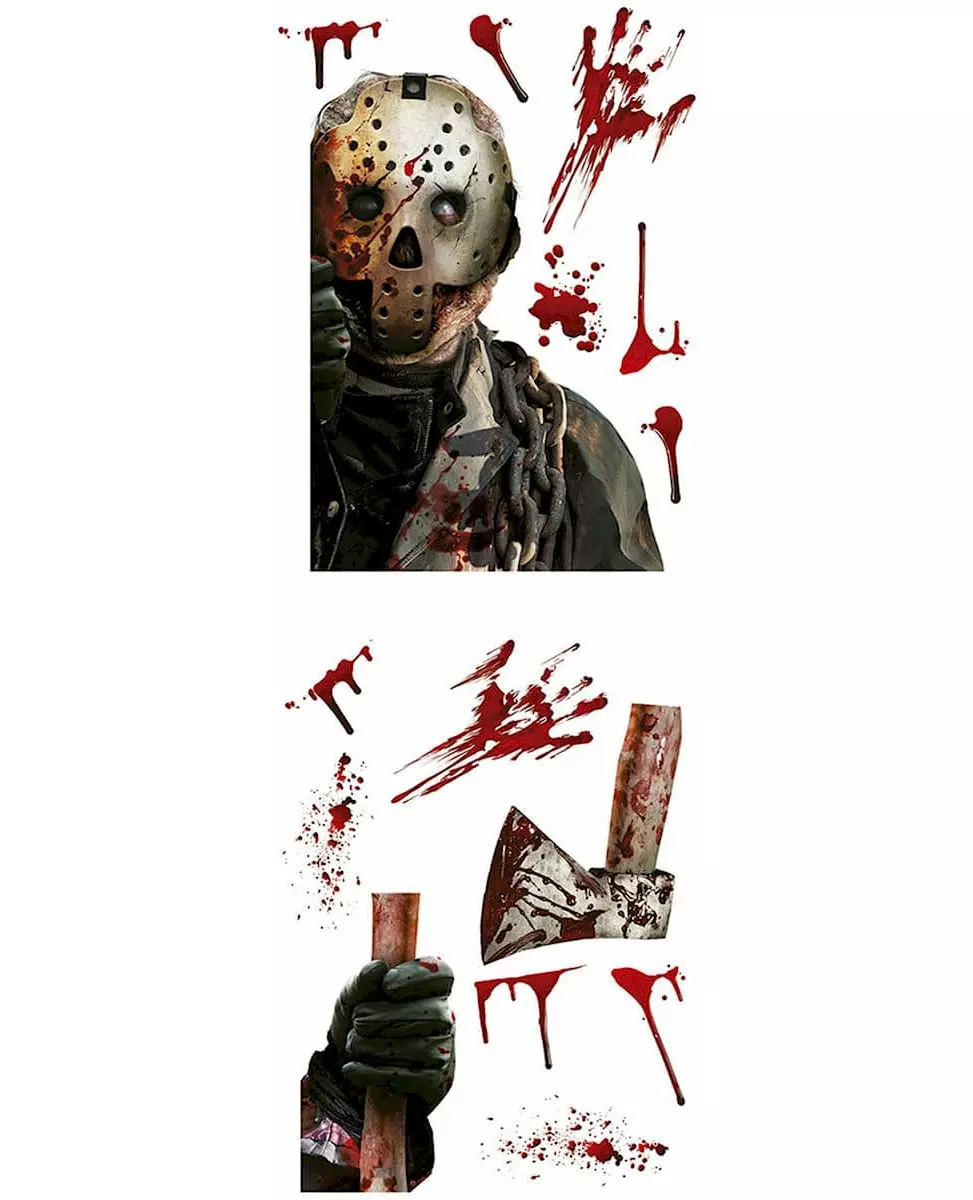 Skap en skummel atmosfære denne Halloween! Dette settet består av to ark med statiske klebemidler som forestiller en øksemorder. Dekorasjonen måler omtrent 30 x 40 cm. Hvert ark har elementer som utgjør den endelige dekorasjonen, en morder med en blodig øks og diverse blodspor. Dekorasjonen er enkel å påføre uten behov for lim eller andre limtyper. Skrem naboene dine til å tro at det er en blodtørstig morder i huset med denne Halloween-dekorasjonen! Inkludert tilbehør: 2 ark øksemorder. Materiale: statiske klebemidler.