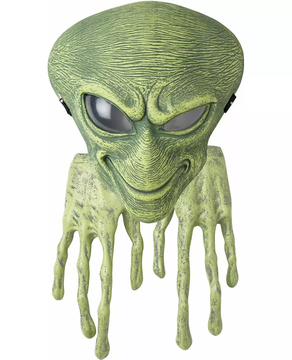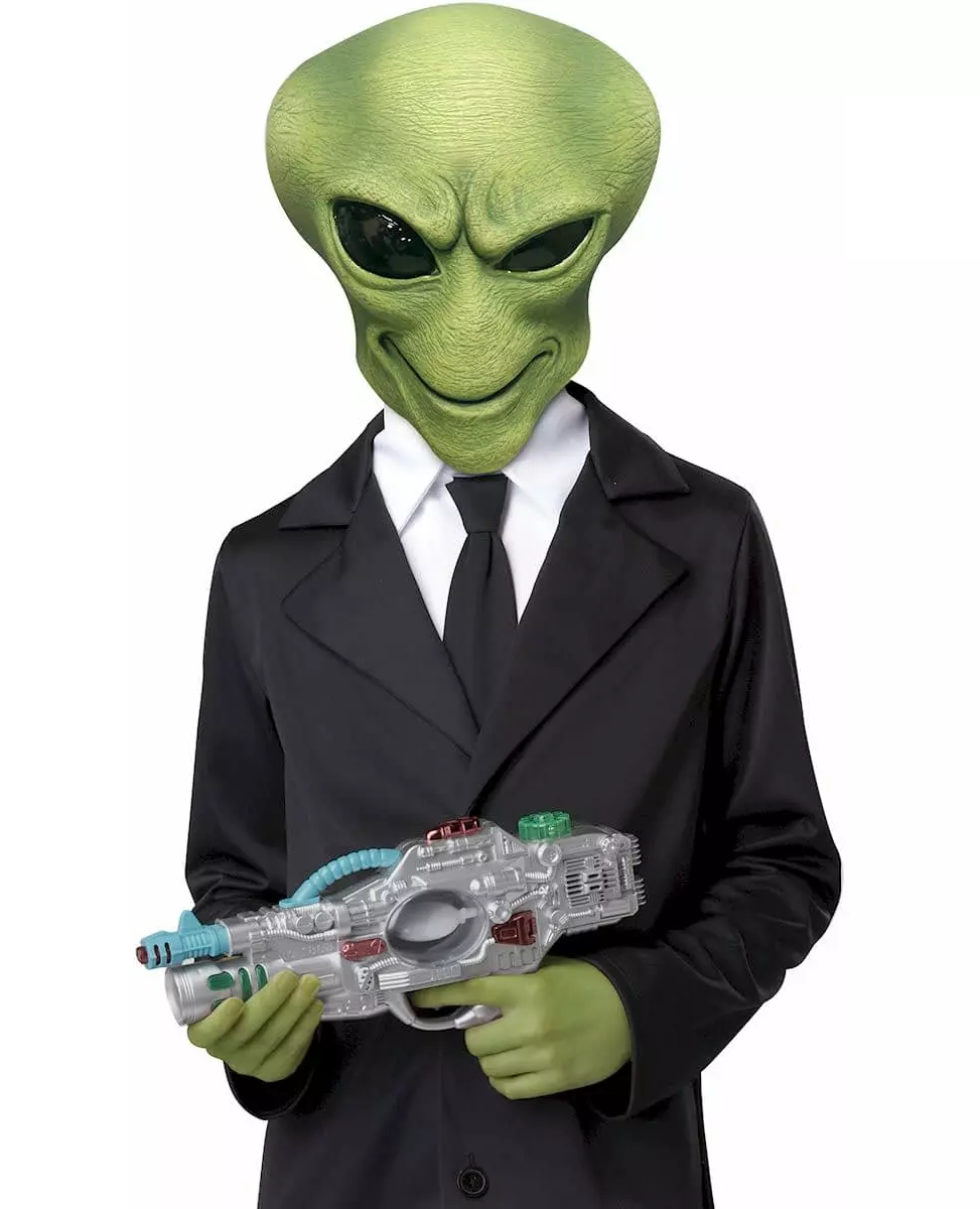 Jakt på romvesener med dette settet. Dette settet består av en maske og et par hansker for voksne (andre deler er ikke inkludert). Disse er laget av stoff og representerer ansiktet og hendene til en romvesen. Masken dekker kun ansiktet. Dette settet vil være perfekt for å fullføre romvesenkostymet ditt til karneval. Inkludert tilbehør: Maske og hansker