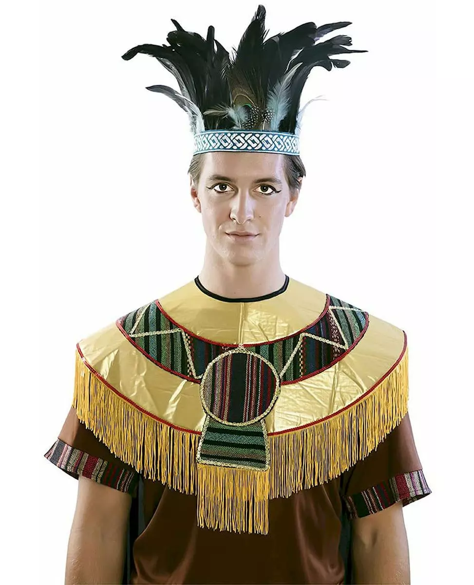 Fullfør aztekkostymet ditt med denne fjærkronen. Denne aztekkronen er for voksne. Den er en farget flette, hvor lange svarte fjær, blå fjær og påfuglfjær er festet. Den vil være perfekt for å fullføre aztekkostymet ditt til karnevalet. Inkludert tilbehør: Krone