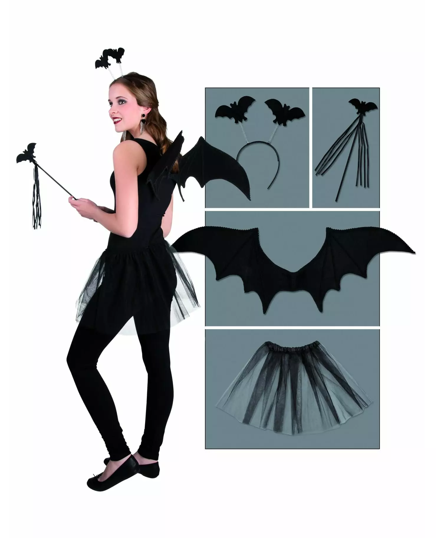 Dette flaggermussettet for voksne inkluderer en tryllestav, en tyllskjørt, et pannebånd og et par vinger. Den gjennomsiktige, svarte tutuen har elastikk i livet og passer perfekt til kroppsfasongen din. Et pannebånd med antenner toppet med svarte flaggermus er også inkludert i dette settet. En svart tryllestav med en flaggermus i enden kompletterer kostymet. Til slutt er et par vinger, som hver måler 48 cm, inkludert. Disse vingeparene glir på som en ryggsekk. Dette settet vil være essensielt for å fullføre Halloween-kostymet ditt. Inkludert tilbehør: Tryllestav, par vinger, pannebånd-tyllskjørt
