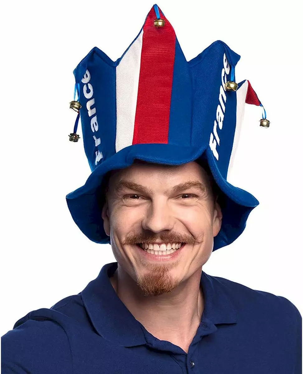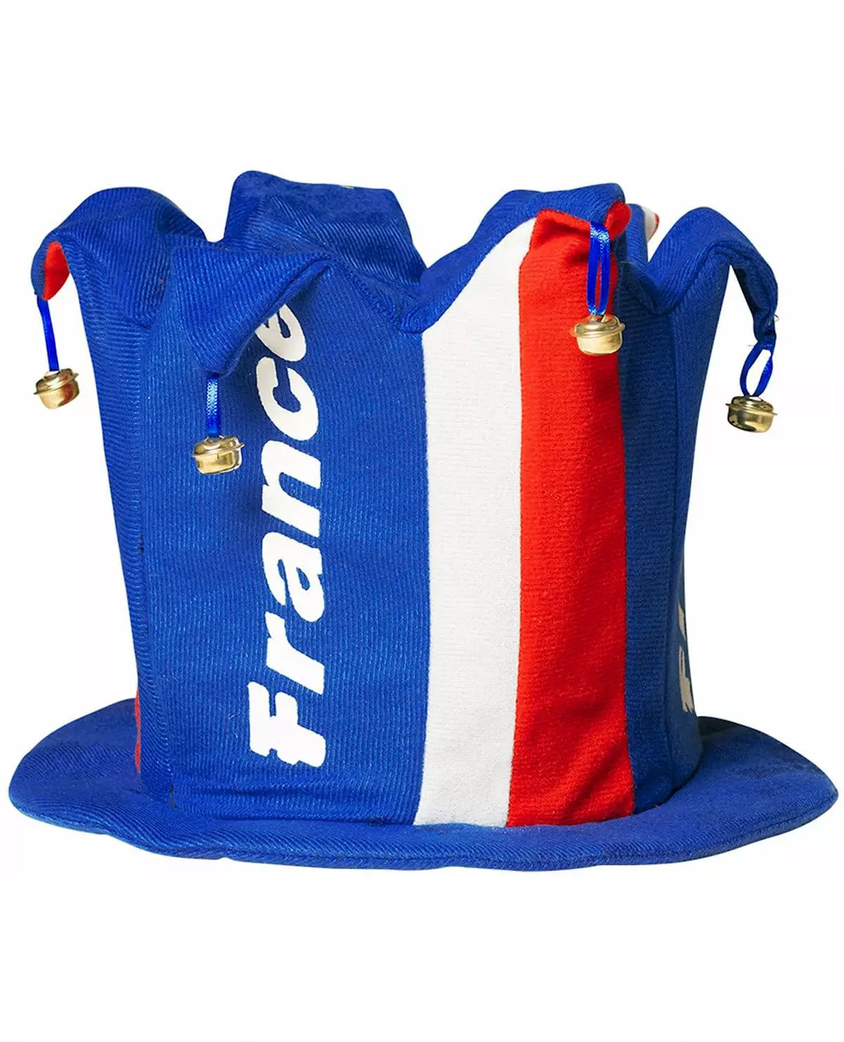 Bruk Frankrikes farger Denne supporterluen for voksne representerer en narrehatt. Den er laget av skum og dekket med fint stoff i fargene til det franske flagget. Metalliske bjeller er plassert på hver spiss av luen. Ordet «Frankrike» er trykt på hver blå spiss. Denne luen har en hodeomkrets på omtrent 59 cm. Dette vil være perfekt for å fullføre supporterantrekket ditt for sportsbegivenheter som VM eller EM. Inkludert tilbehør: Lue Materiale: 100 % polyester