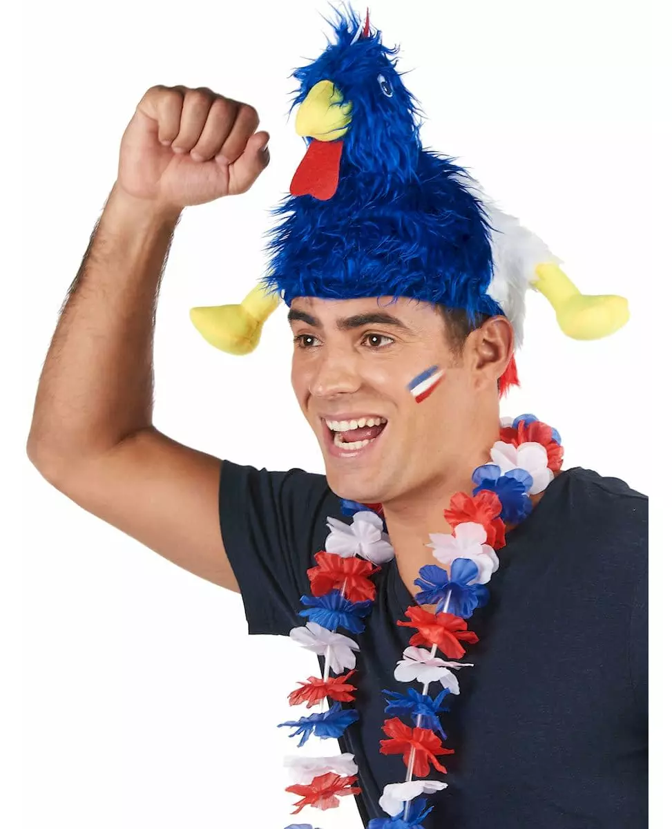 Allez les bleus! Denne Frankrike-supporterluen representerer Frankrikes hane. Den er blå, hvit og rød og har en hodeomkrets på omtrent 58 cm. Den er også elastisk for å tilpasse seg alle hoder. Denne luen vil være perfekt for å støtte Blues-laget!. Inkludert tilbehør: lue Materiale: Polyester Stell: Håndvask Målinformasjon: Hodeomkrets: 58 cm