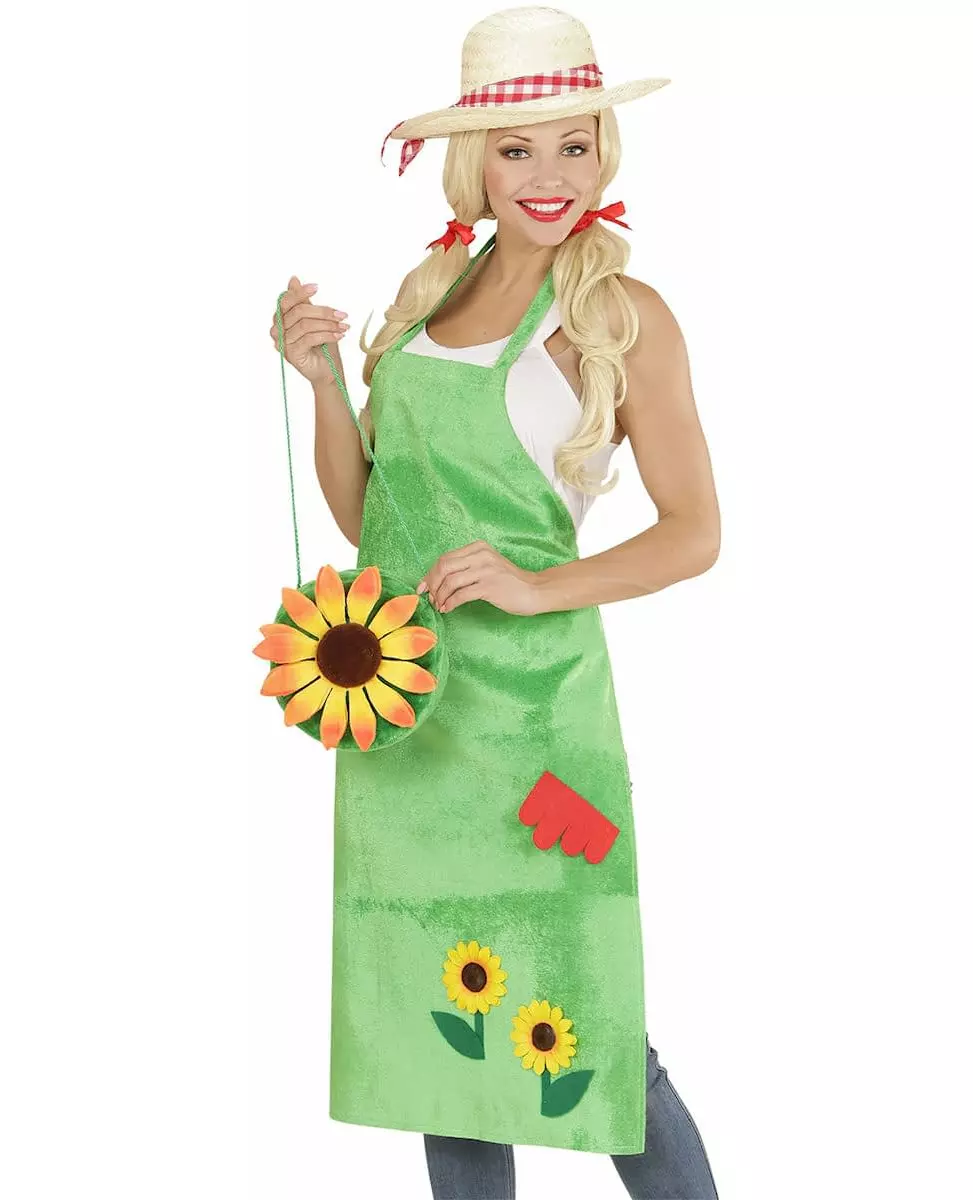 Plant frøplantene dine! Denne hagedrakten for voksne passer for både menn og kvinner (kun forkleet er inkludert; klær, hatt, sko, vannkanne og spade er ikke inkludert). Dette forkleet er laget av tykt grønt stoff med fløyelseffekt. Det er dekorert med to solsikker i stoff som gir et sommerlig preg! Det har en stropp til å ha bak nakken og to stropper til å knytes bak ryggen. Dette tilbehøret vil være uunnværlig for en humoristisk kveld med venner eller en fest med naturtema! Copyright Widmann SRL» © Copyright Widmann SRL. Inkludert tilbehør: 1 bluse Materiale: 100 % polyester Pleie: Håndvask