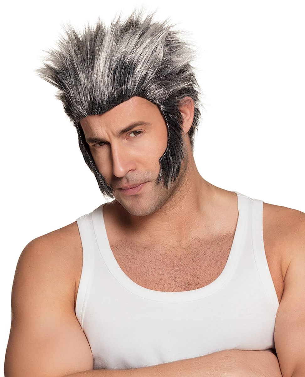 Voksen grå varulvparykk med ben