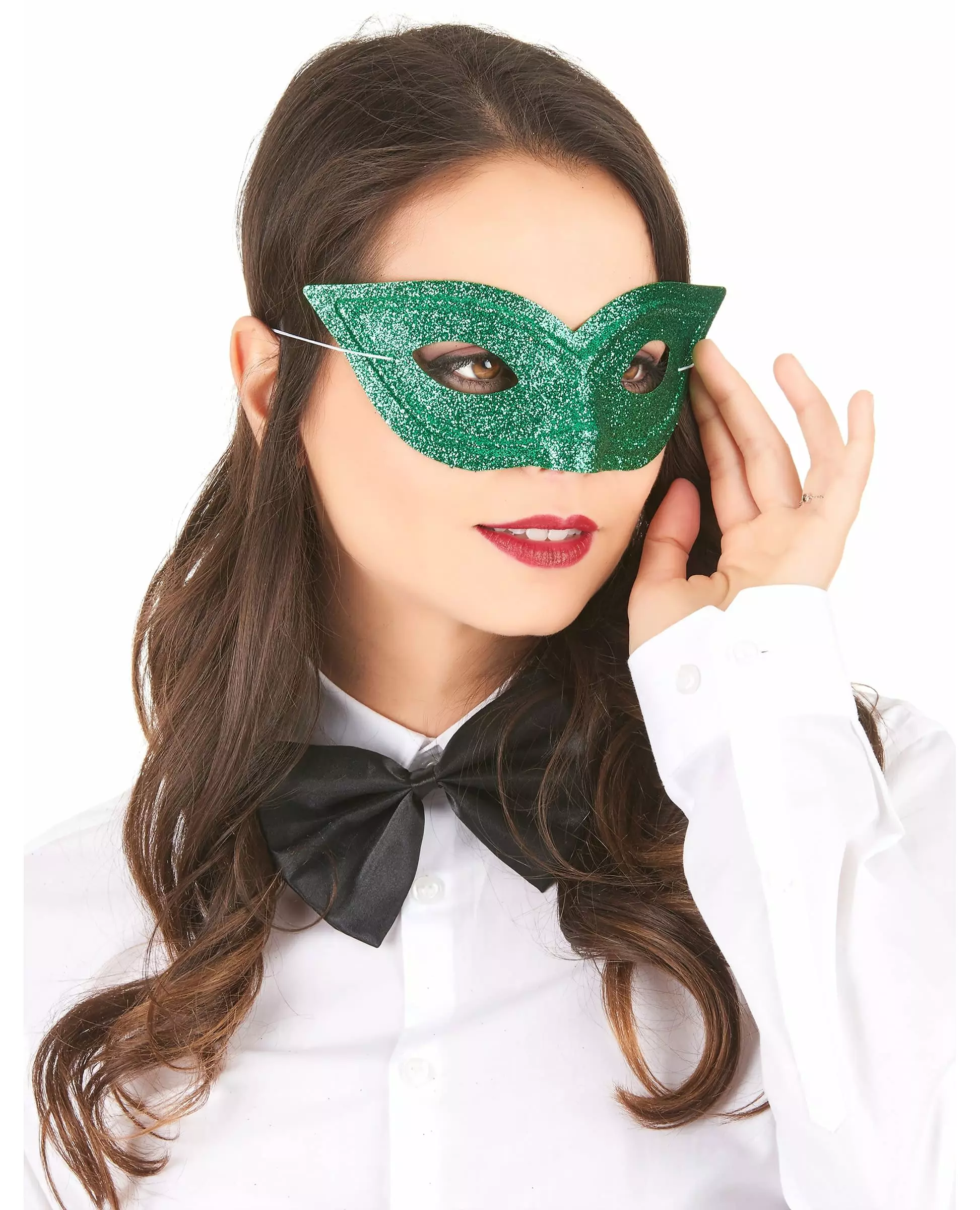 Grønn, paljettbesatt venetiansk øyemaske for voksne inkluderer: Øyemaske.