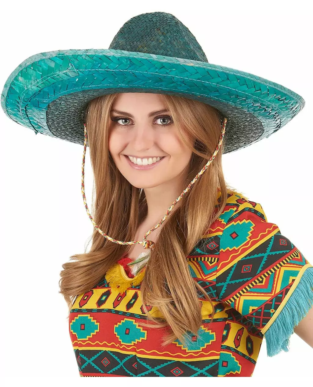 Mexico! Denne sombreroen for voksne er laget av strå. Den er grønn. Et slips er også inkludert (tilfeldig slipsfarge). Det vil være det ideelle tilbehøret for å fullføre kostymet ditt til en utkledningsfest eller et meksikansk tema. Inkludert tilbehør: Sombrero. Materiale: Strå.