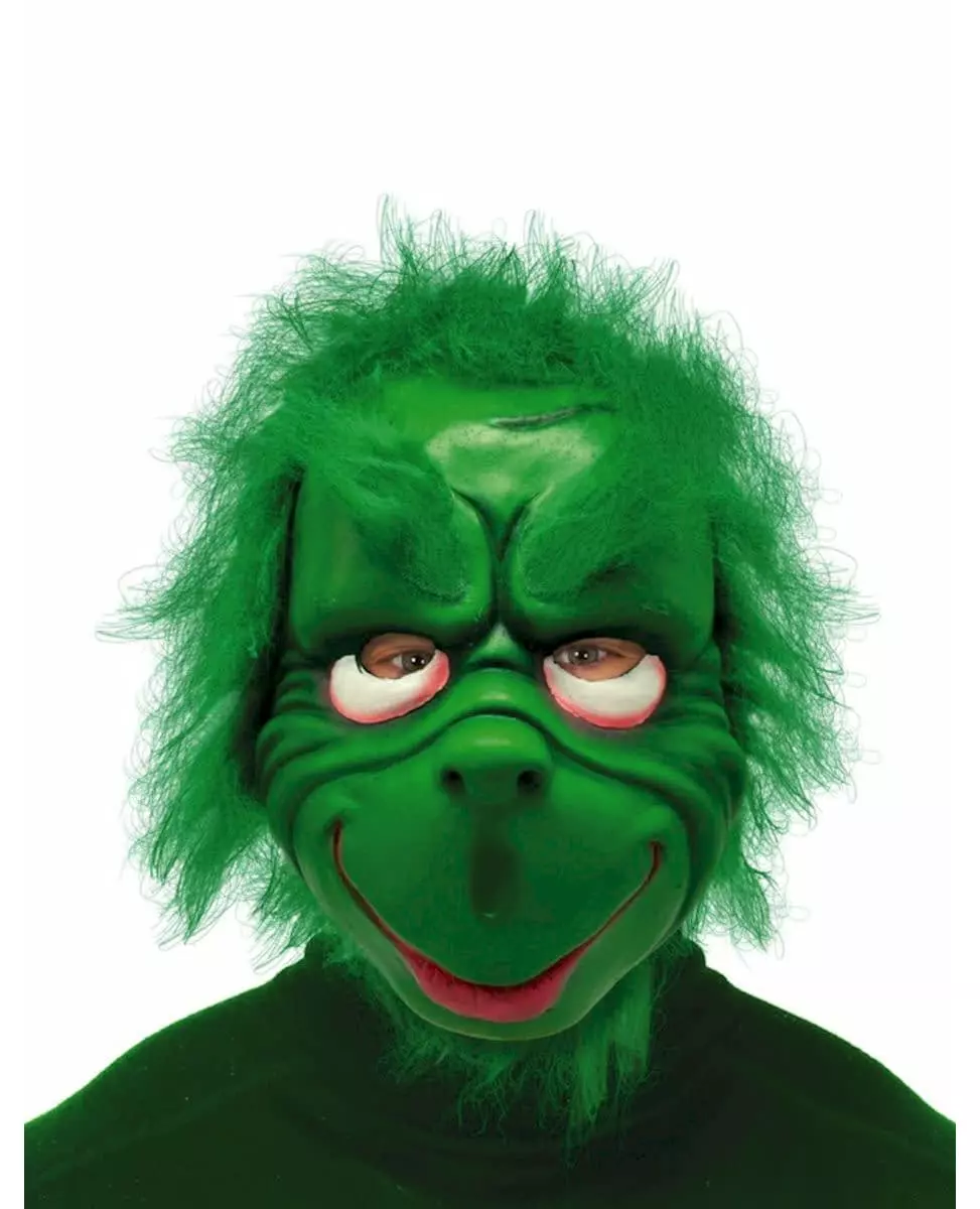 Gretten til jul! Denne gretne, grønne julemasken er for voksne. Denne halvmasken er grønn og har grønn fuskepels. Den har et rampete smil som minner om den berømte tegneseriefiguren. Den har en strikk som gjør den enkel å holde på plass. Bli den gretneste personen rundt jul med denne julemasken! Inkludert tilbehør: Maske