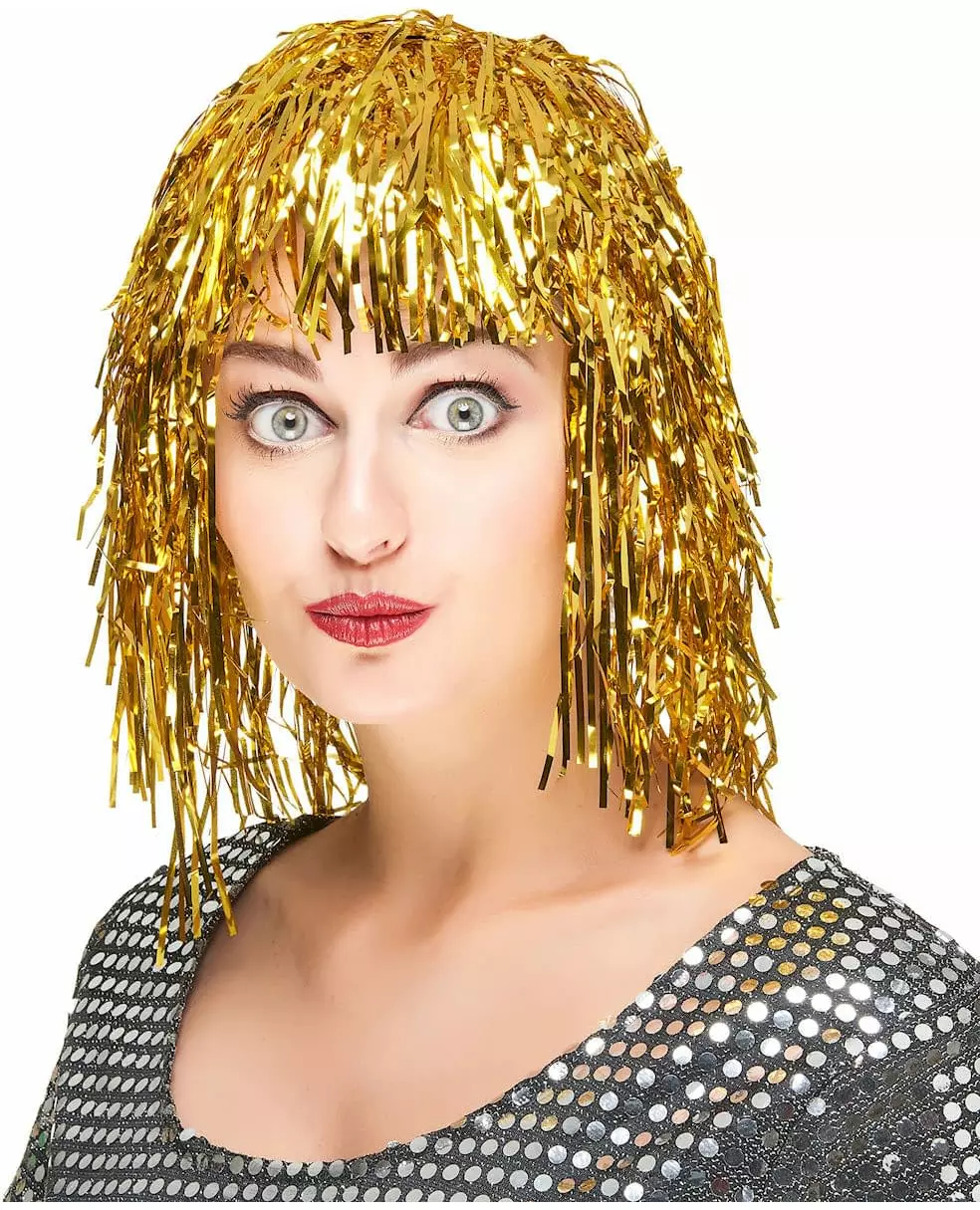 25 cm! Denne metalliske parykken for voksne, denne gylne parykken med pannelugg, måler omtrent 25 cm og går ned til skuldrene. Du kan enkelt tilpasse den. Ideell som et supplement til kostymet ditt under en temafest med venner. Inkludert tilbehør: Parykk