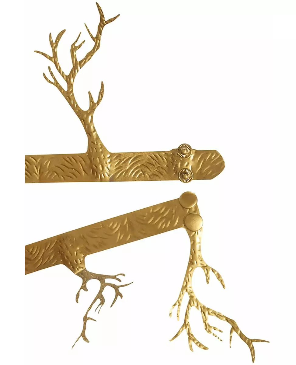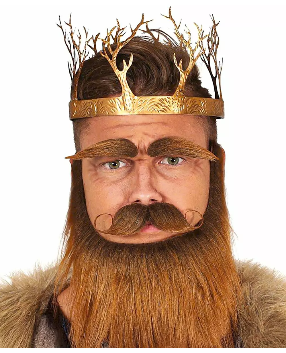 Hjortehuset! Denne middelalderske kongekronen er for voksne. Kongekronen er gullfarget. Omrisset er toppet med hjortegevir som representer dyret som tilsvarer kongefamilien. Denne kronen minner om en konge fra en berømt fantasy-TV-serie. Med denne kronen for å fullføre ditt middelalderske kongekostyme, kan du legemliggjøre en maktmann for en kveld med temaet TV-serier eller middelaldertema, eller rett og slett til karnevalet! Inkludert tilbehør: krone Vedlikehold: Håndvask.
