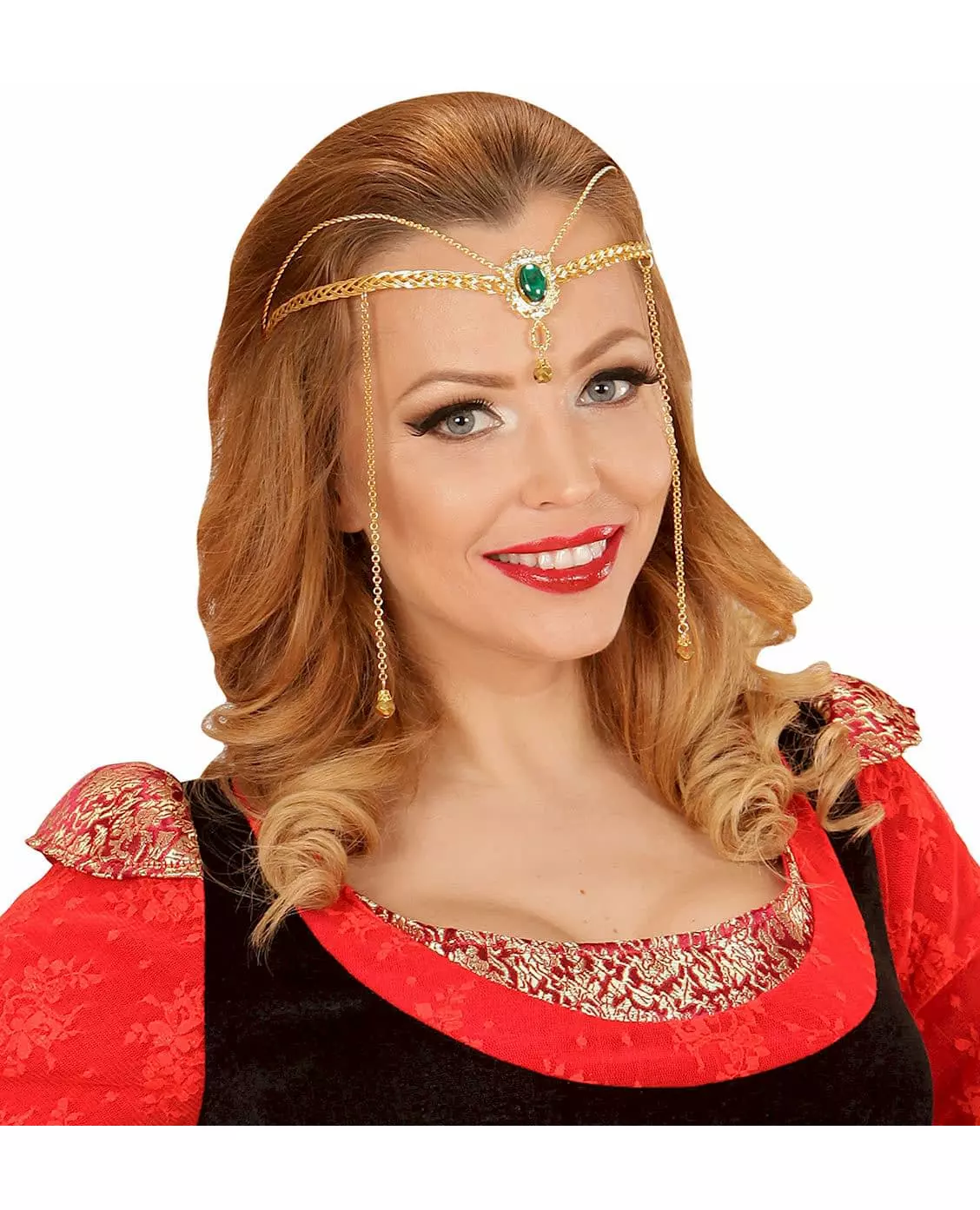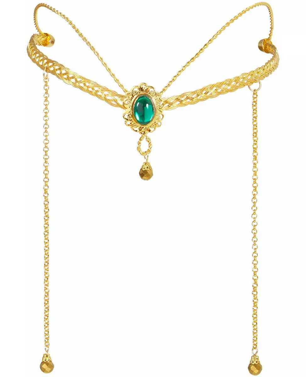 Å være den vakreste prinsessen! Denne middelalderske alvetiaraen er for kvinner. Den er laget av gullfarget metall med en grønn kunstig stein foran. To 16 cm lange kjeder er plassert på sidene av tiaraen. Denne tiaraen vil være perfekt for å fullføre ditt middelalderske dronningkostyme til karnevalet. Copyright Widmann SRL. Inkludert tilbehør: -tiara Materiale: Metall