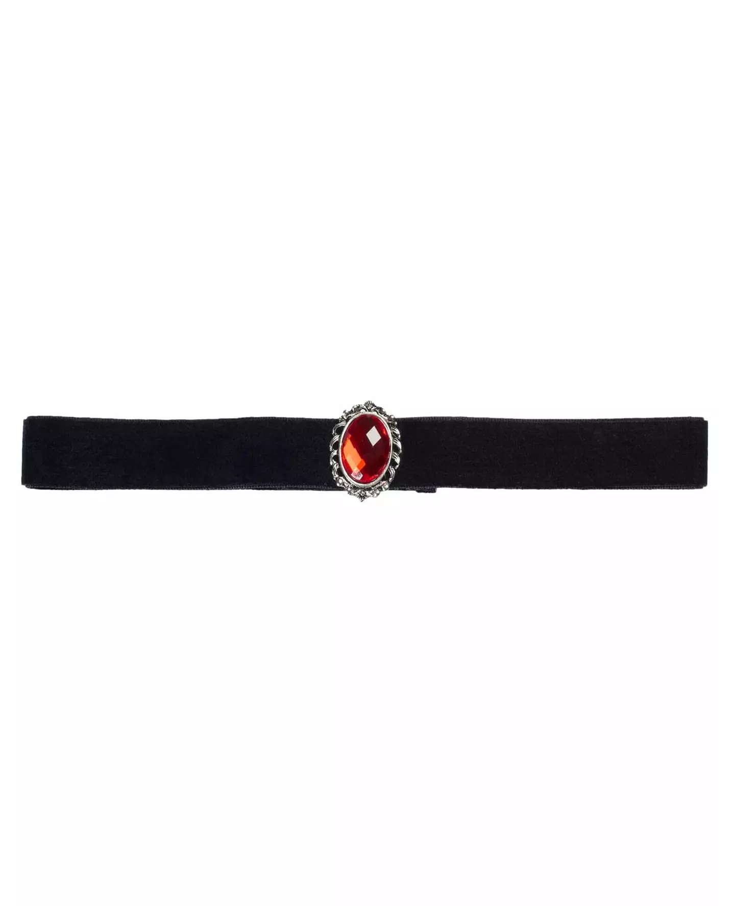 Fullfør kostymet ditt med dette halskjedet! Dette halskjedet er for kvinner. Det er laget av svart fløyel med en imitert rød edelsten i midten. Det måler omtrent 38 cm i lengden og 2 cm i høyden, og kan festes og justeres med borrelås. Dette halskjedet vil være perfekt for å fullføre antrekket ditt til Halloween eller en kostymefest. Copyright Widmann SRL. Inkludert tilbehør: Halskjede