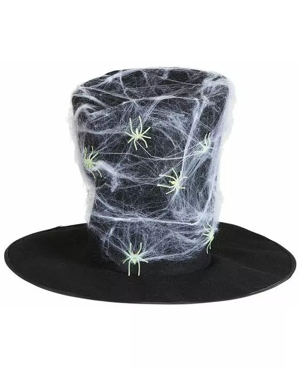 For en klasse! Denne hatten for voksne er en svart flosshatt dekket av falske nett og fosforescerende edderkopper. Hatten er laget av filt. Hodeomkretsen måler omtrent 60 cm. Som et supplement til et vampyrkostyme, for eksempel, vil denne hatten gi et elegant preg til kostymet ditt under utkledningsfesten din som Halloween. Copyright Widmann SRL. Inkludert tilbehør: Hatt Materiale: 100 % polyester