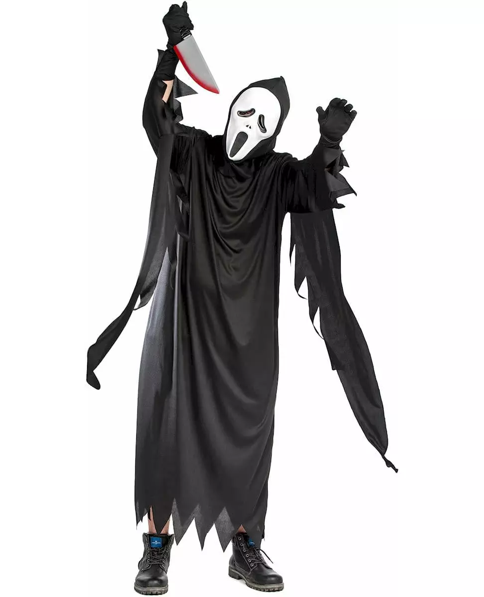 Legemliggjør terroren denne Halloween! Dette maskerte morderkostymet for voksne består av en svart jumpsuit og en skremmende maske, perfekt for å innpode frykt på Halloween eller andre utkledningsfester. Den flagrende, lette, svarte jumpsuiten når ned til anklene og omslutter deg av et mystisk utseende. De lange ermene og det løse stoffet sikrer ikke bare optimal komfort, men gir også et snev av drama til hver bevegelse, noe som fremhever ditt uhyggelige utseende. Høydepunktet ved dette kostymet er selvfølgelig den skumle masken. Med uttrykket frosset i et skrekkskrik, skjuler den ansiktet ditt fullstendig og forvandler deg til en hensynsløs, identitetsløs morder. Denne masken dekker hele ansiktet, og lar bare øynene dine være synlige for et enda mer avslappende preg. Dette kostymet er enkelt å ta på og bruke, og er det perfekte valget for alle som ønsker å blande seg inn i verdenen av ikoniske mordere fra skrekkfilmer. Enten du hjemsøker gatene på Halloween-kvelden eller skremmer vennene dine på en temafest, garanterer dette maskerte morderkostymet en slående effekt. Inkludert tilbehør: 1 kostyme 1 maske Materiale: 100 % polyester Pleie: Håndvask