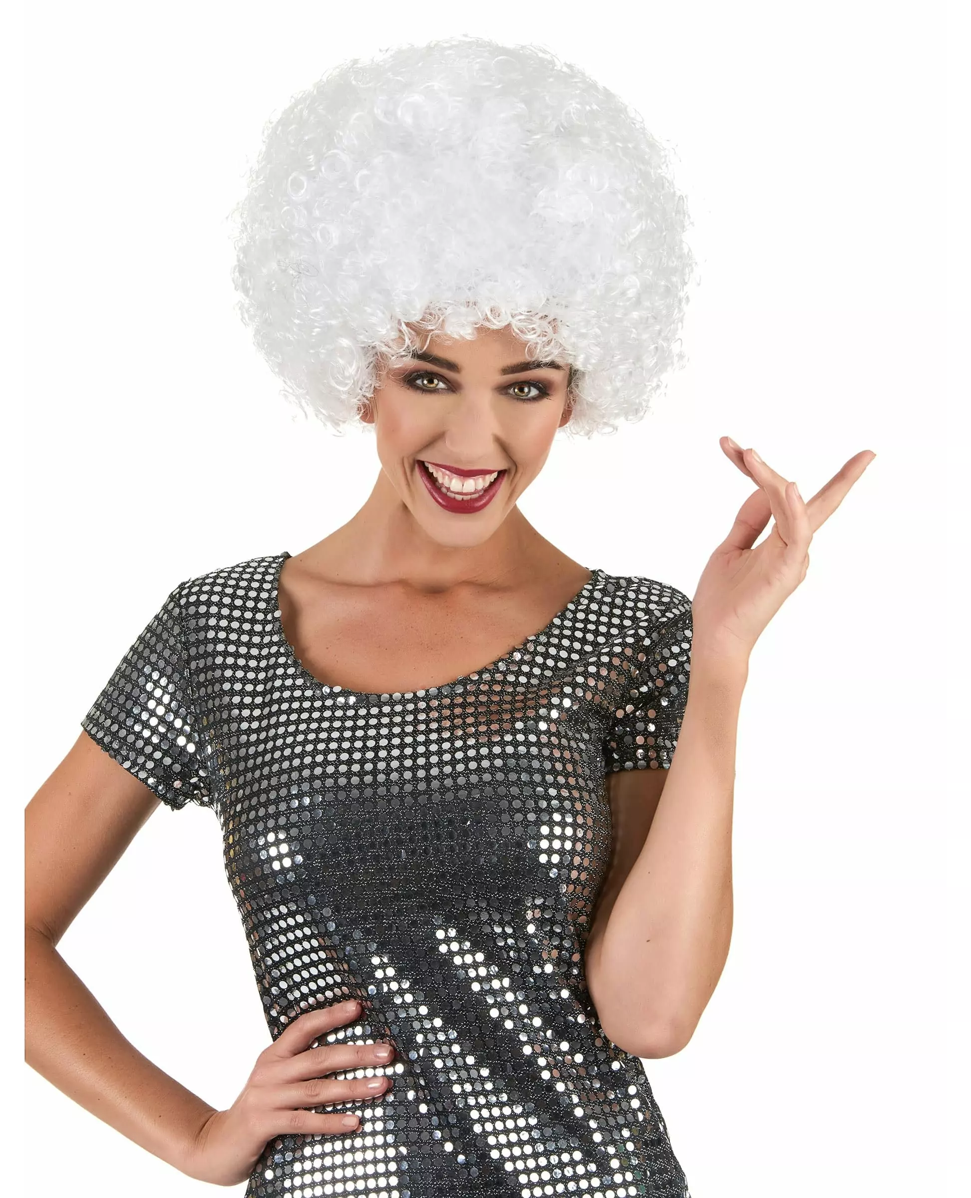 En vakker hvit hodeplagg! Denne fantastiske afroparykken for voksne er laget av skinnende hvitt syntetisk hår. Et nett inni parykken vil gjøre det enkelt å tilpasse seg de fleste hodestørrelser. Et avrundet volum for eksempel for en diskotekfest eller enhver annen anledning til å pynte seg og feste! Inkludert tilbehør: Parykkmateriale: Syntetisk