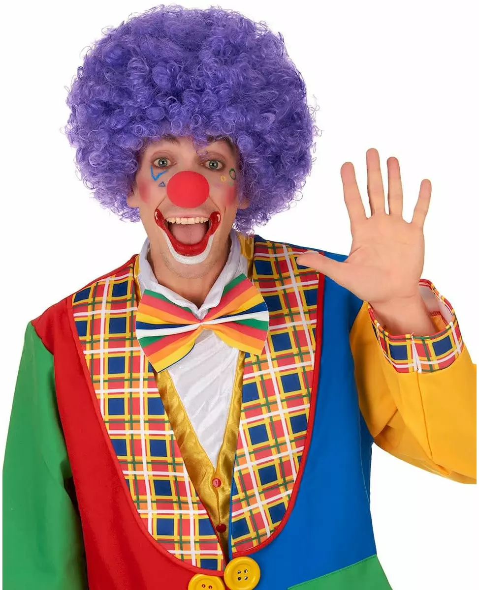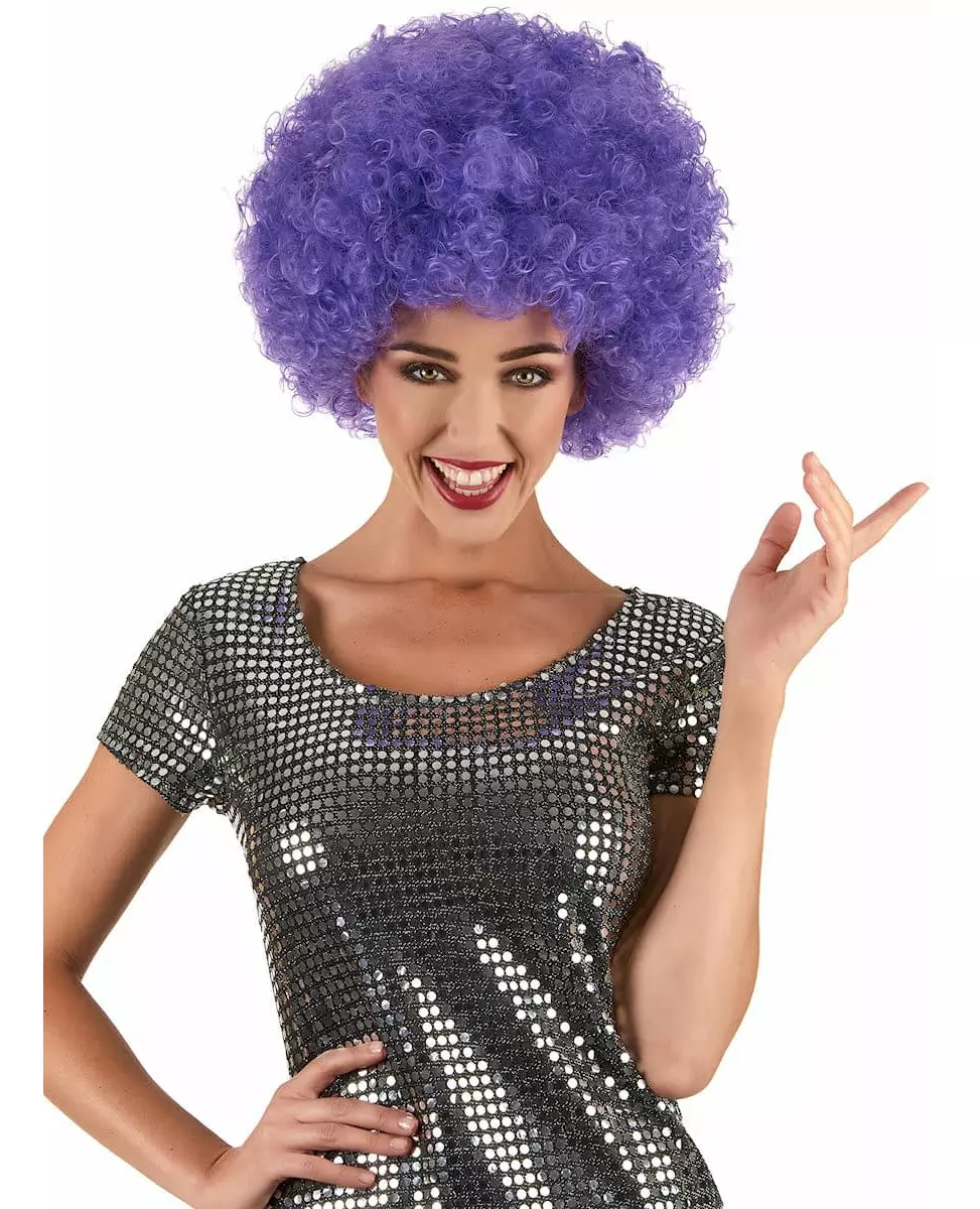 Funky! Denne voluminøse parykken for voksne er lilla. Den har mye volum og vil være ideell for å fullføre klovnekostymet ditt eller discodanseantrekket ditt for temafester med venner eller til karneval. Inkludert tilbehør: Parykkmateriale: Syntetisk