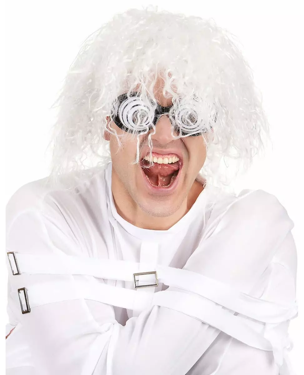 Hvit farge! Denne gale vitenskapsmannsparykken for voksne er laget av rufsete, krøllete hvitt hår. Den er veldig enkel å ta på takket være et hvitt hårnett. Denne parykken kan utfylle et bredt utvalg av kostymer under temafestene dine.