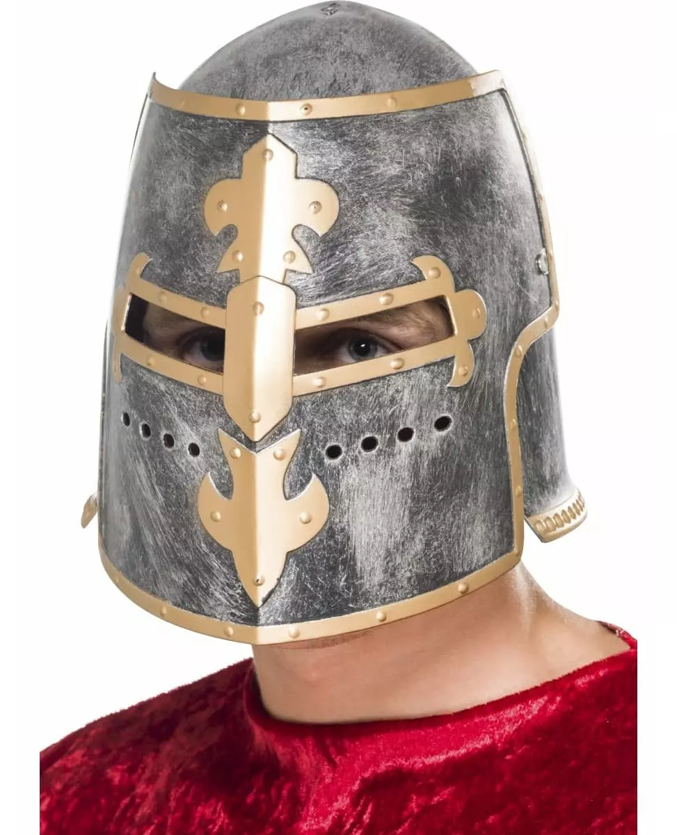 Erobre nye land! Denne ridderhjelmen for voksne er grå med gulldetaljer. Laget av stiv plast, har den et stort visir på forsiden som kan heves for å avsløre ansiktet. Åpninger er på visiret i øye- og nesehøyde. Denne hjelmen dekker hodet helt for en realistisk effekt! Et ideelt og essensielt tilbehør for å fullføre et middelaldersk ridderkostyme til en middelalderfest eller til karneval! Inkludert tilbehør: Hjelmmateriale: Plast Målinformasjon: