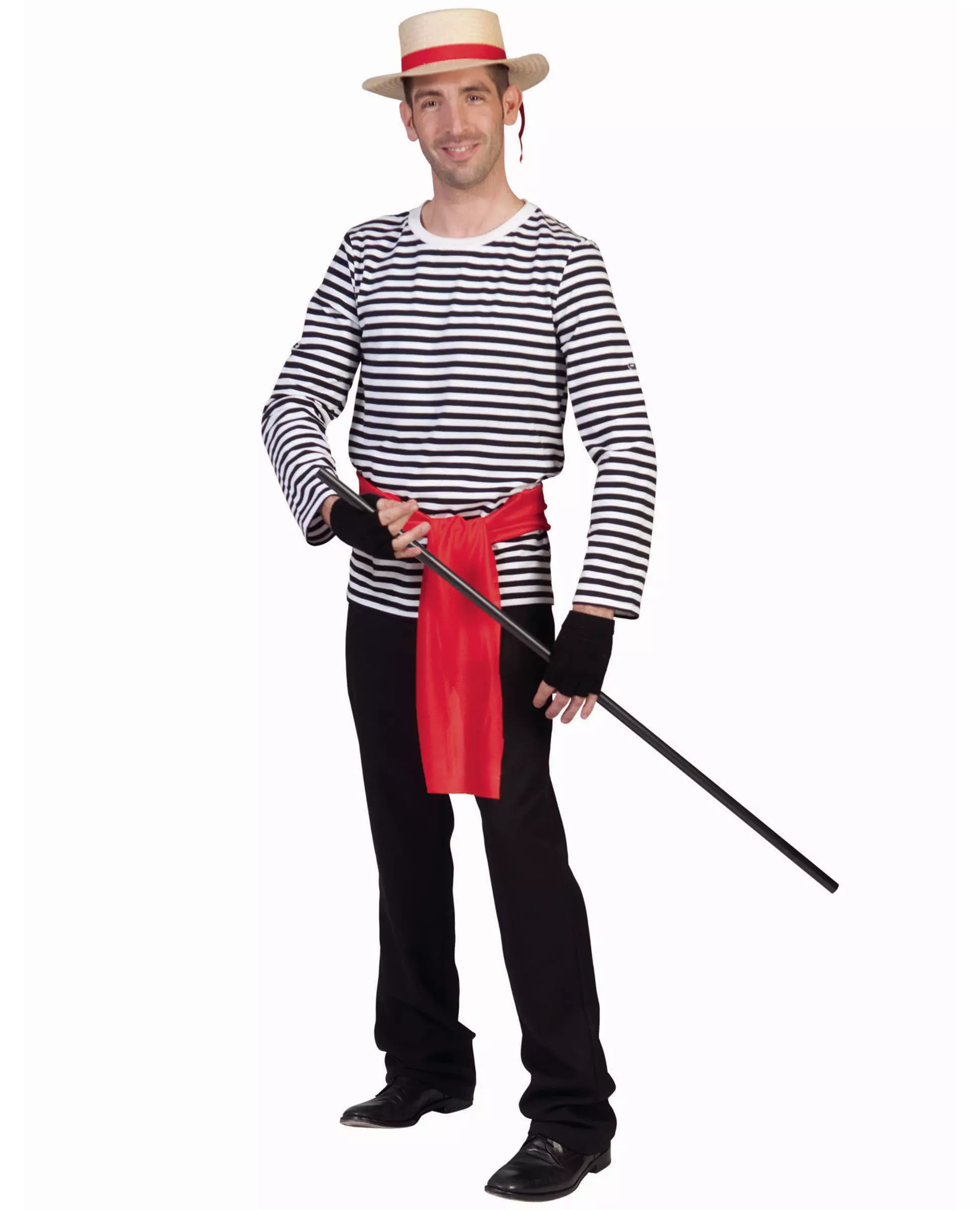 Mimen har talt! Denne mime-t-skjorten er for voksne. Den har lange ermer og er dekorert med svarte og hvite striper. Denne t-skjorten vil være perfekt for å fullføre mime- eller fangekostymet ditt til karnevalet. Inkludert tilbehør: T-skjorte Materiale: 100 % polyester Pleie: Håndvask