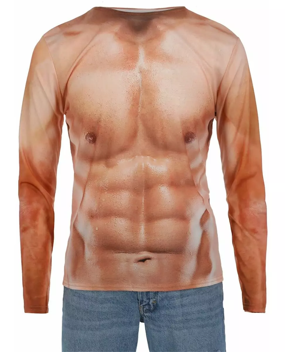 Vil du ha en drømmekropp uten anstrengelse? Denne toppen er for deg! Denne langermede t-skjorten for voksne har et trykk av en muskuløs torso. Denne toppen er trykt på begge sider, og vil få deg til å føle at du har en drømmekropp. Denne toppen vil være perfekt for å skifte til Apollo uten å måtte ta av deg toppen!. Inkludert tilbehør: T-skjorte Materiale: 100 % polyester Pleie: Håndvask