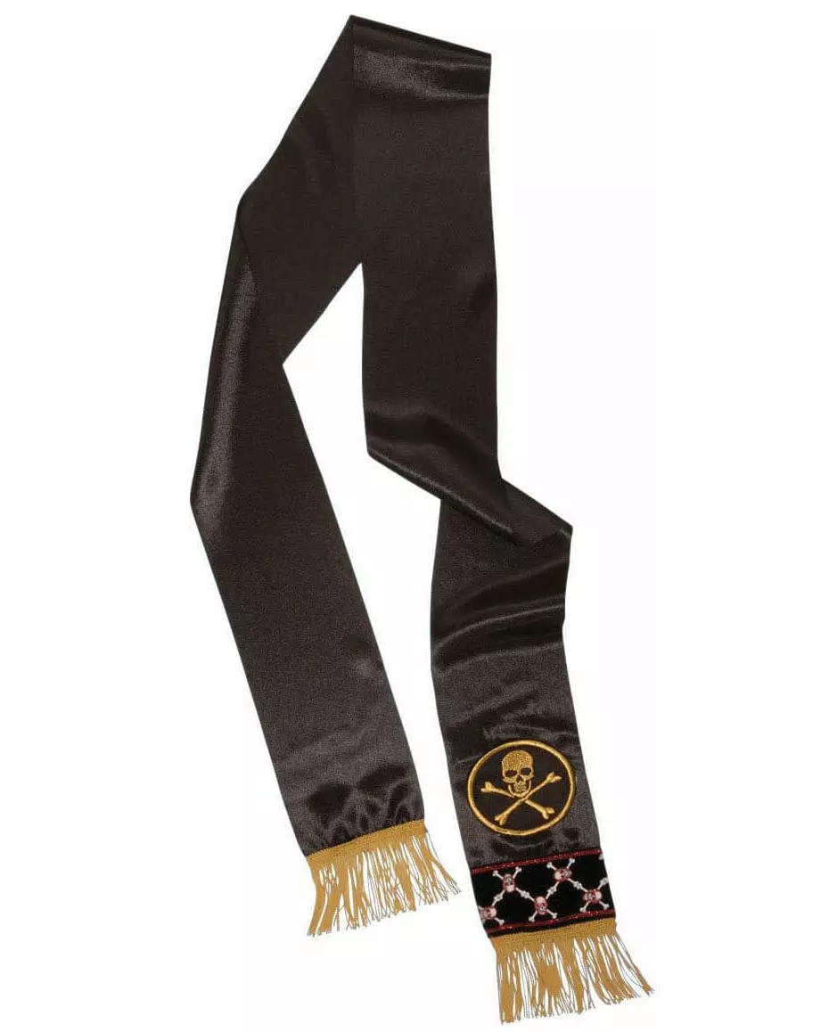 Alle om bord! Dette piratbeltet er for voksne. Svart og sateng, det avsluttes med gullfrynser. På forsiden er det sydd et svart og gullfarget piratmerke, samt en bred skråkant med svarte og hvite hodeskaller med røde paljetter. Det måler 12 cm i høyden og 180 cm i lengden. Dette tilbehøret vil være ideelt for å fullføre sjørøverantrekket ditt under en temafest eller et karneval. © Copyright Widmann SRL. Inkludert tilbehør: Belte Materiale: 100 % polyester Stell: For hånd
