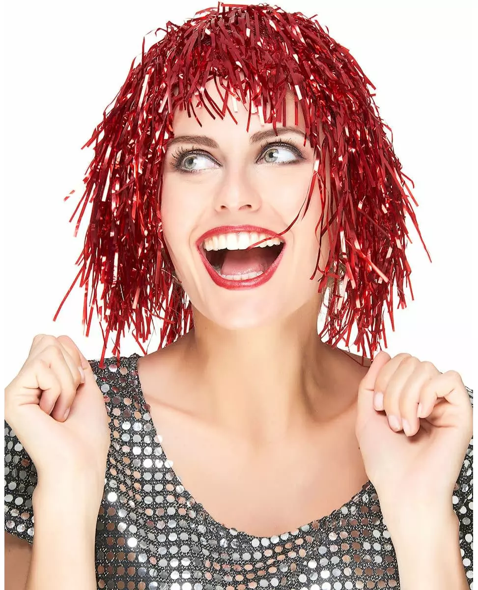 Glamorøs! Denne røde metalliske parykken er veldig original. Den har en rett lugg som vil fremheve øynene dine. Den vil være perfekt for å endre utseendet ditt på kort tid og legge til farge til et discokostyme. Inkludert tilbehør: Parykk