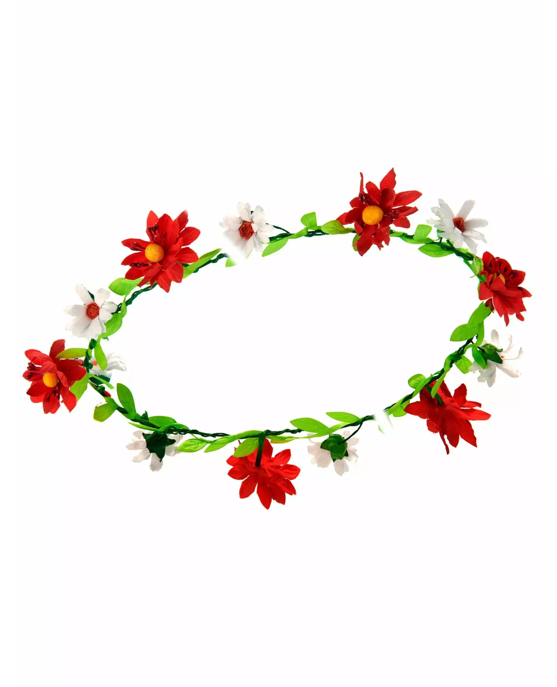 Storslått! En veldig vakker krone av røde og hvite blomster montert på en metallstilk for å sikre at den holder seg på hodet. For å fullføre middelalder-, hippie- eller fe-kostymet ditt, vil dette tilbehøret for voksne være uunnværlig for en kostymefest. Inkludert tilbehør: Krone Materiale: Stoff, stål