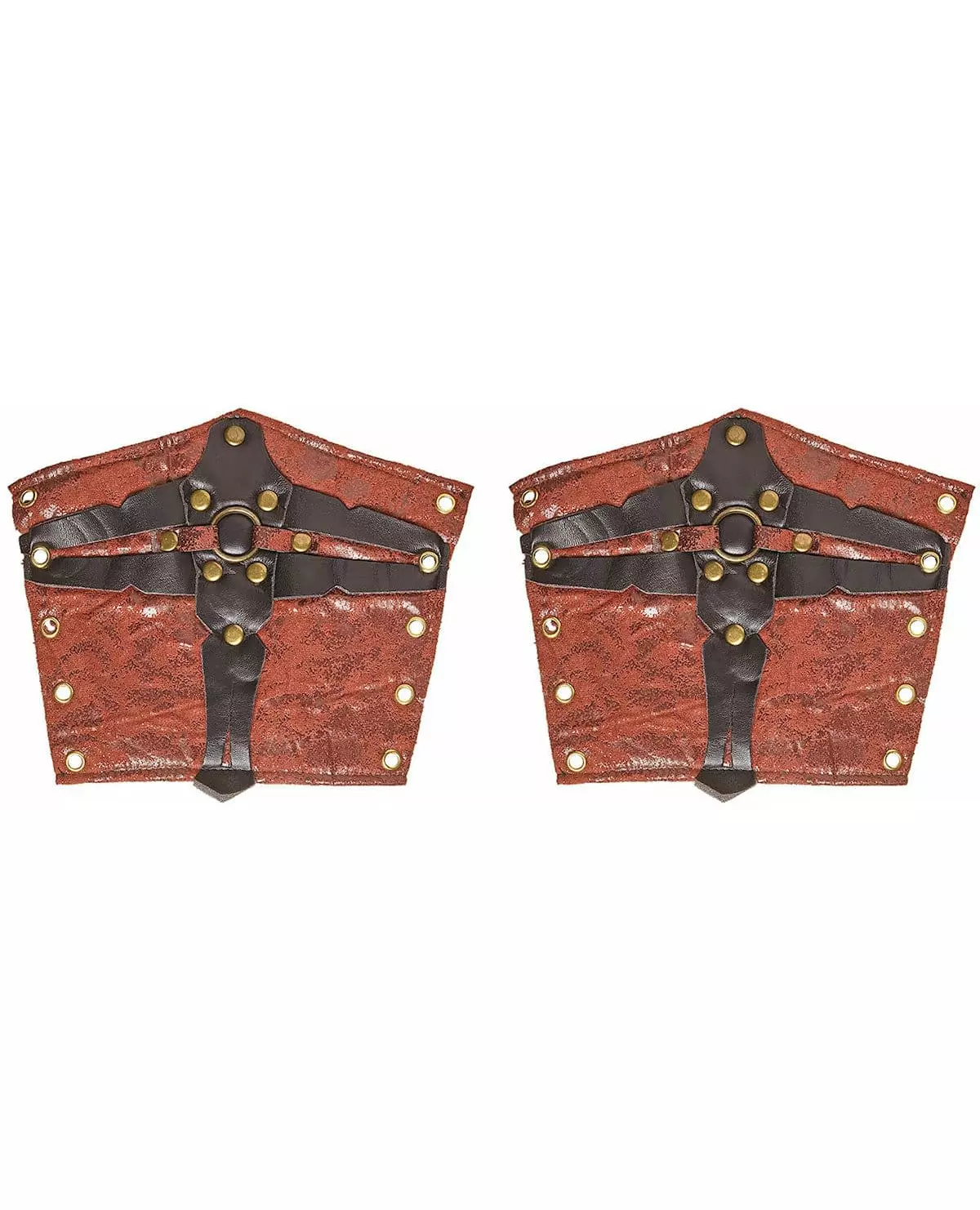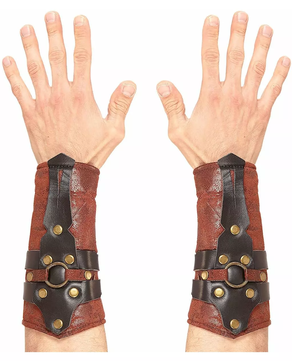 Klar for krig! Disse mansjettene i kunstskinn er brune og dekorert med svarte stropper og gullnagler. Maljer gjør at de kan knytes ved håndleddene. Disse mansjettene vil være perfekte som tilbehør til et gammelt gresk eller romersk kostyme og vil gi et snev av realisme! © Copyright Widmann SRL. Inkludert tilbehør: Mansjett