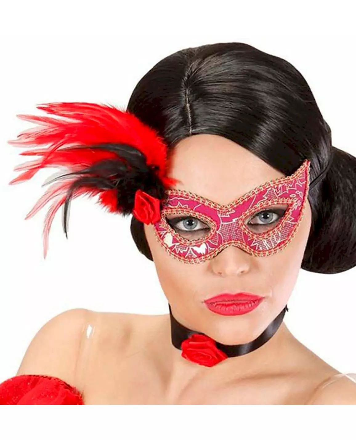 Med fine mønstre! Denne rosa ulven med gullmønstre har fine svarte og røde fjær med en rød rose. En strikk er tilgjengelig for å gjøre den lettere å holde. Den vil være ideell for å fullføre antrekket ditt på et kostyme- eller temaarrangement. «Copyright Widmann SRL». «Copyright Widmann SRL Inkludert tilbehør: Ulv,