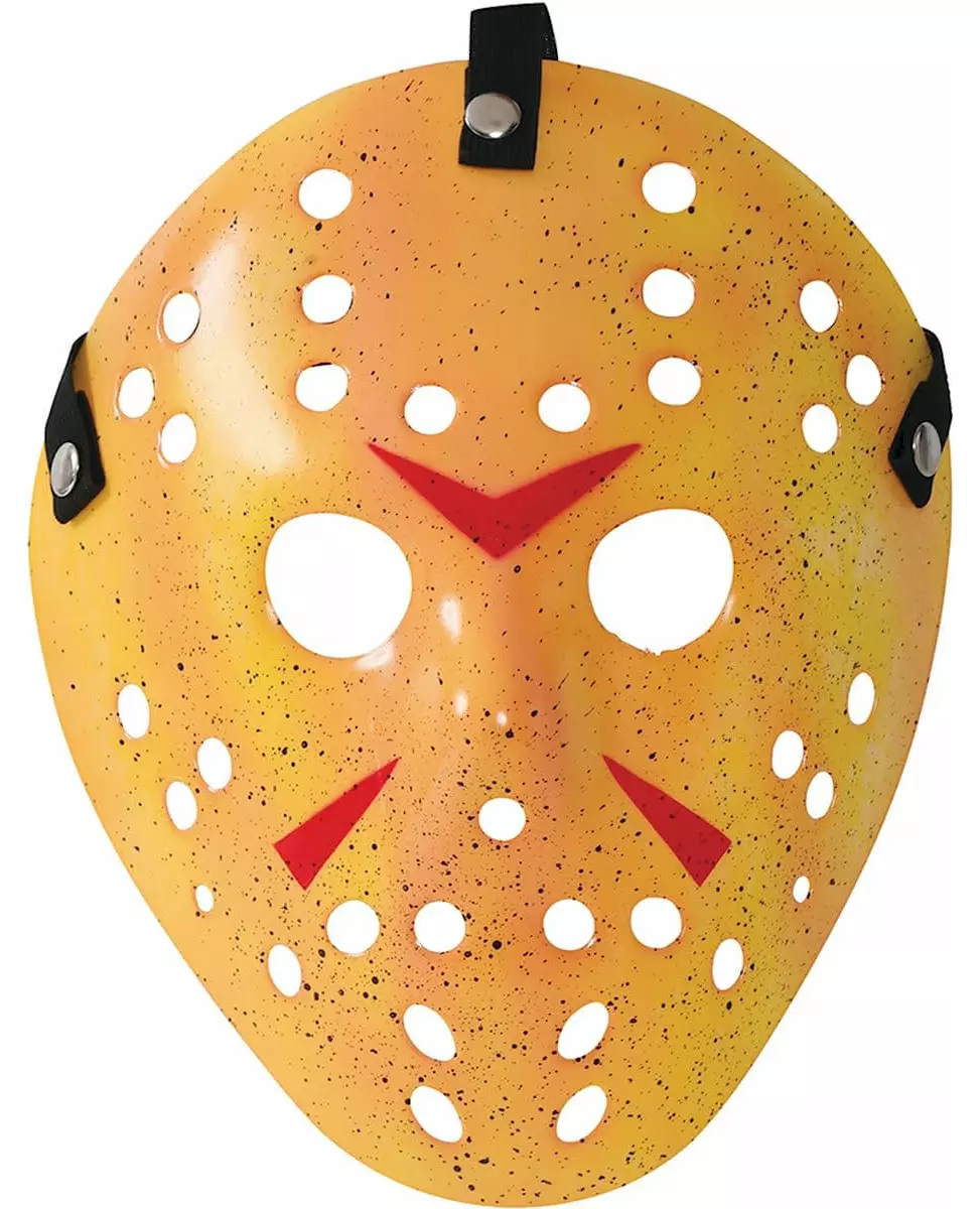 Føl deg som Jason med denne hockeymasken. Denne voksenmasken er en gul hockeymaske. Den har mange hull med røde markeringer i pannen og under øynene. Denne masken vil være perfekt for å fullføre Halloween-kostymet ditt for en skrekkfilmkveld. Inkludert tilbehør: Maske. Materiale: Plast.