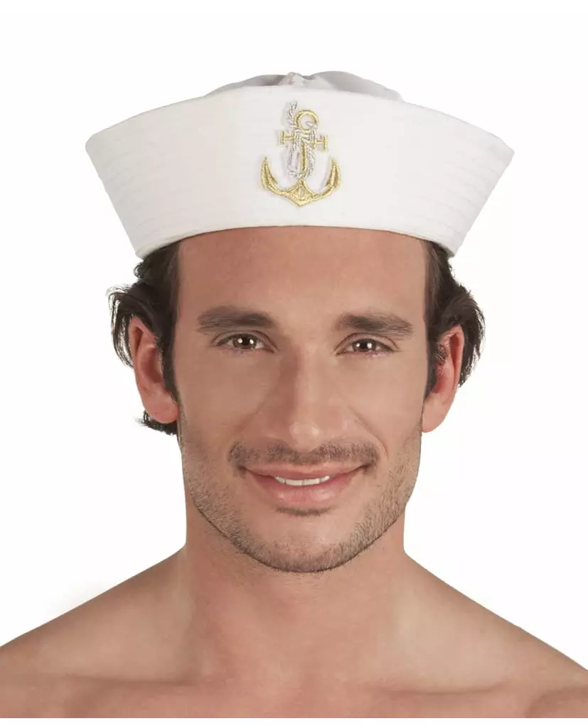 Et elegant preg på sjømannsuniformen! Denne sjømannshatten er for voksne. Helt hvit, med et gull- og sølvanker brodert på forsiden for en garantert elegant effekt! Den sitter komfortabelt på hodet takket være diameteren på omtrent 18 cm. Dette tilbehøret vil elegant forbedre uniformen din til et sjømannstema-kostymefest! Inkludert tilbehør: 1 hatt Materiale: 100 % polyester Stell: Håndvask Målinformasjon: Omtrent 18 cm i diameter
