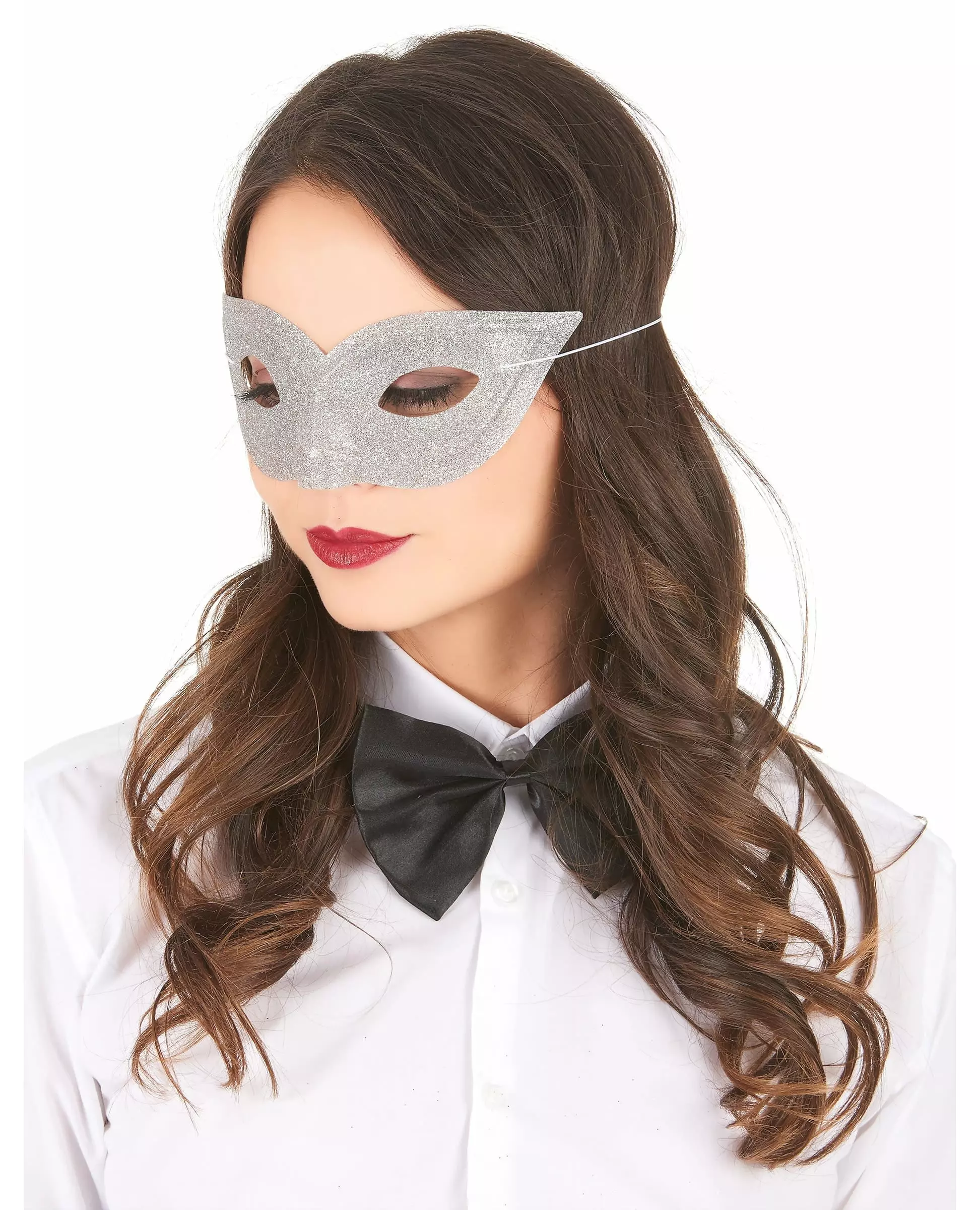 Sølvglitter venetiansk øyemaske for voksne inkluderer: Øyemaske.