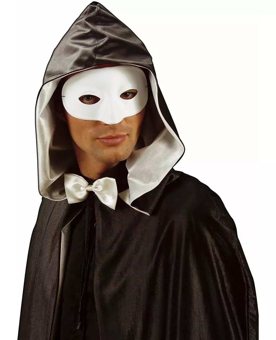 Vær den mest diskrete og rene! Denne hvite masken for voksne plasseres enkelt på ansiktet ditt takket være en strikk på bakhodet. Den vil være ideell for å gå ubemerket hen under karneval eller andre temakvelder. «Copyright Widmann SRL». «Copyright Widmann SRL Materiale: plast dekket med stoff,