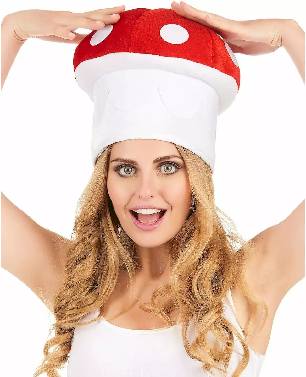Soppen ... pi, soppen! Denne fantastiske soppahatten er for voksne. Den forestiller den berømte giftige soppen med hvite prikker på rød bakgrunn. Soppahatten er polstret. Den passer til hodeomkretser på nesten 60 cm og vil garantert skape moro blant vennene dine på kostymefester eller festivaler. Inkludert tilbehør: Hatt Materiale: 100 % polyester 100 % polyester