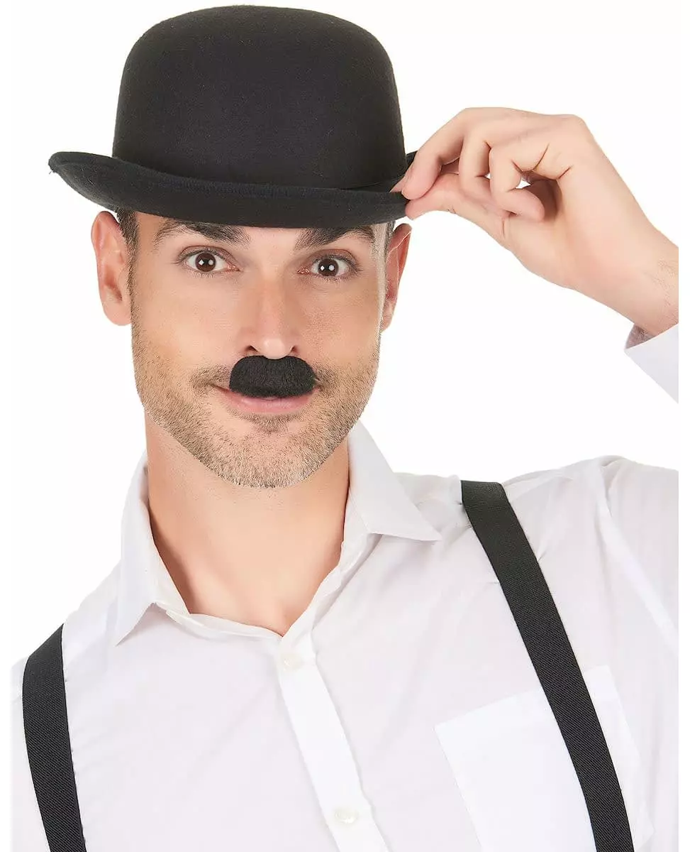 Kos deg med stumfilmer! Denne Charlie Chaplin-barten er for voksne og er laget av svart syntetisk hår. Den er selvklebende og vil være det beste valget for å fullføre et Charlie Chaplin-kostyme til et show eller en kostymefest!. Inkludert tilbehør: Bart