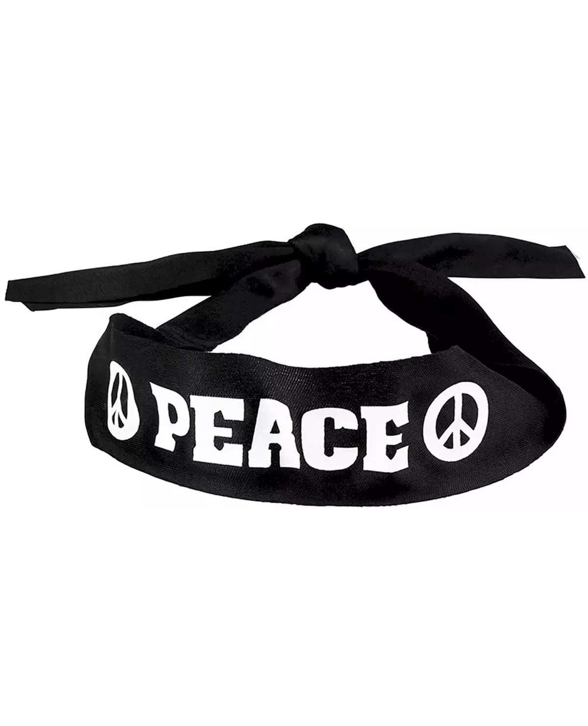 Svart pannebånd 100 % fred Dette svarte pannebåndet med fred og kjærlighet er for voksne. Det måler 92 cm langt, og du kan knyte det rundt hodet. Det er trykt i hvitt på forsiden med FRED-symboler. Dette svarte pannebåndet vil være perfekt for å fullføre hippiekostymet ditt! Inkludert tilbehør: pannebånd Materiale: 100 % polyester