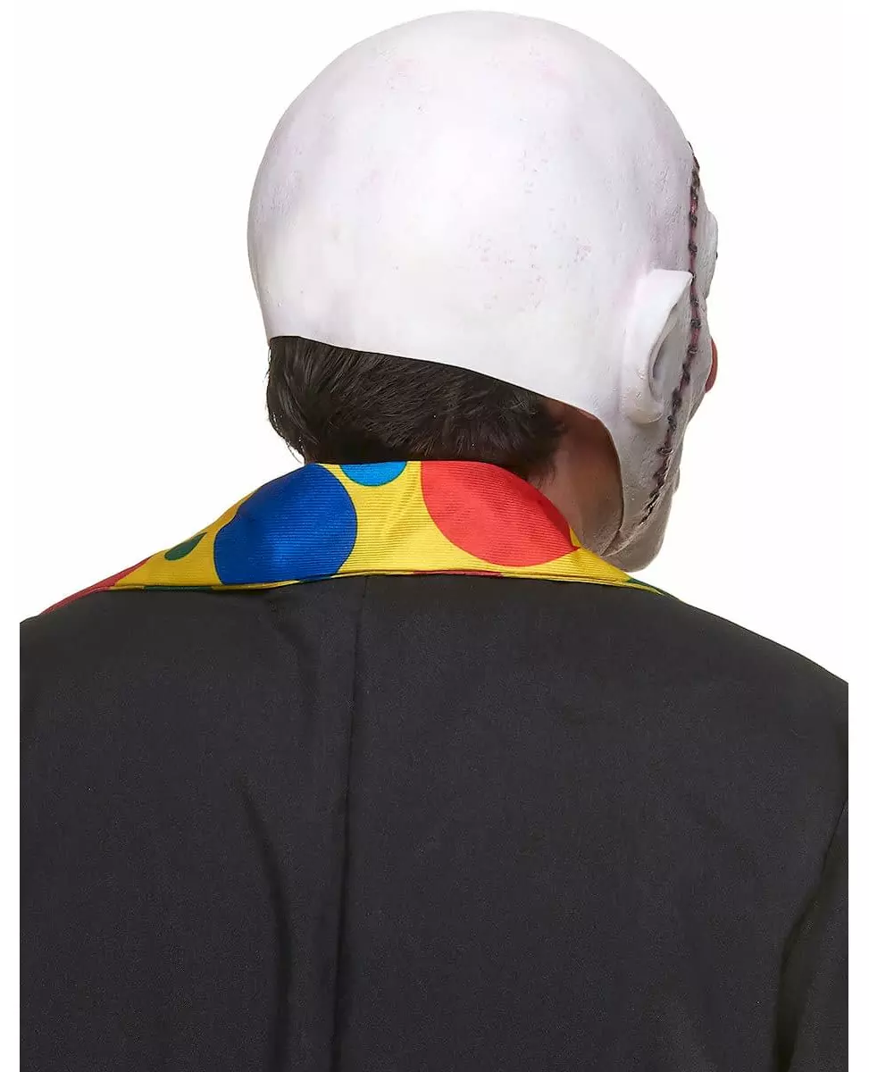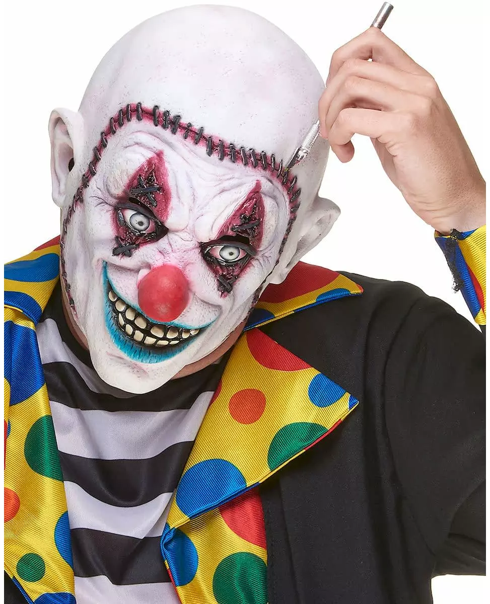 Voksen sydd opp hodeskalleklovn lateksmaske