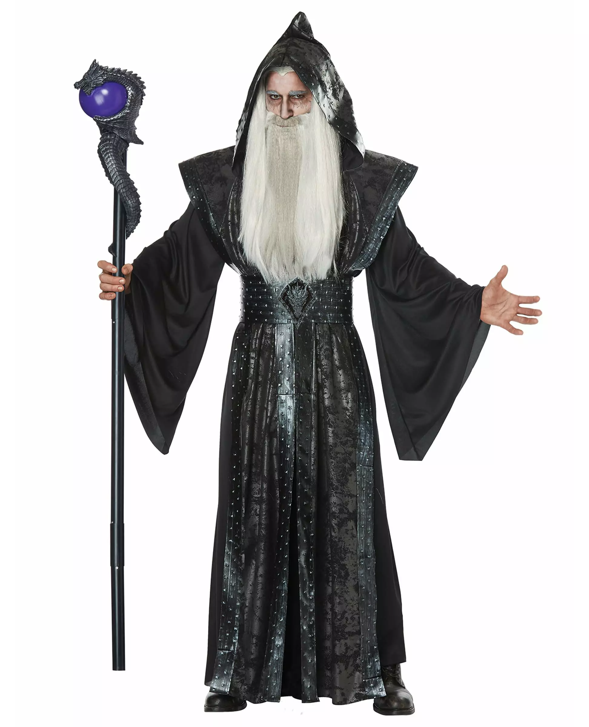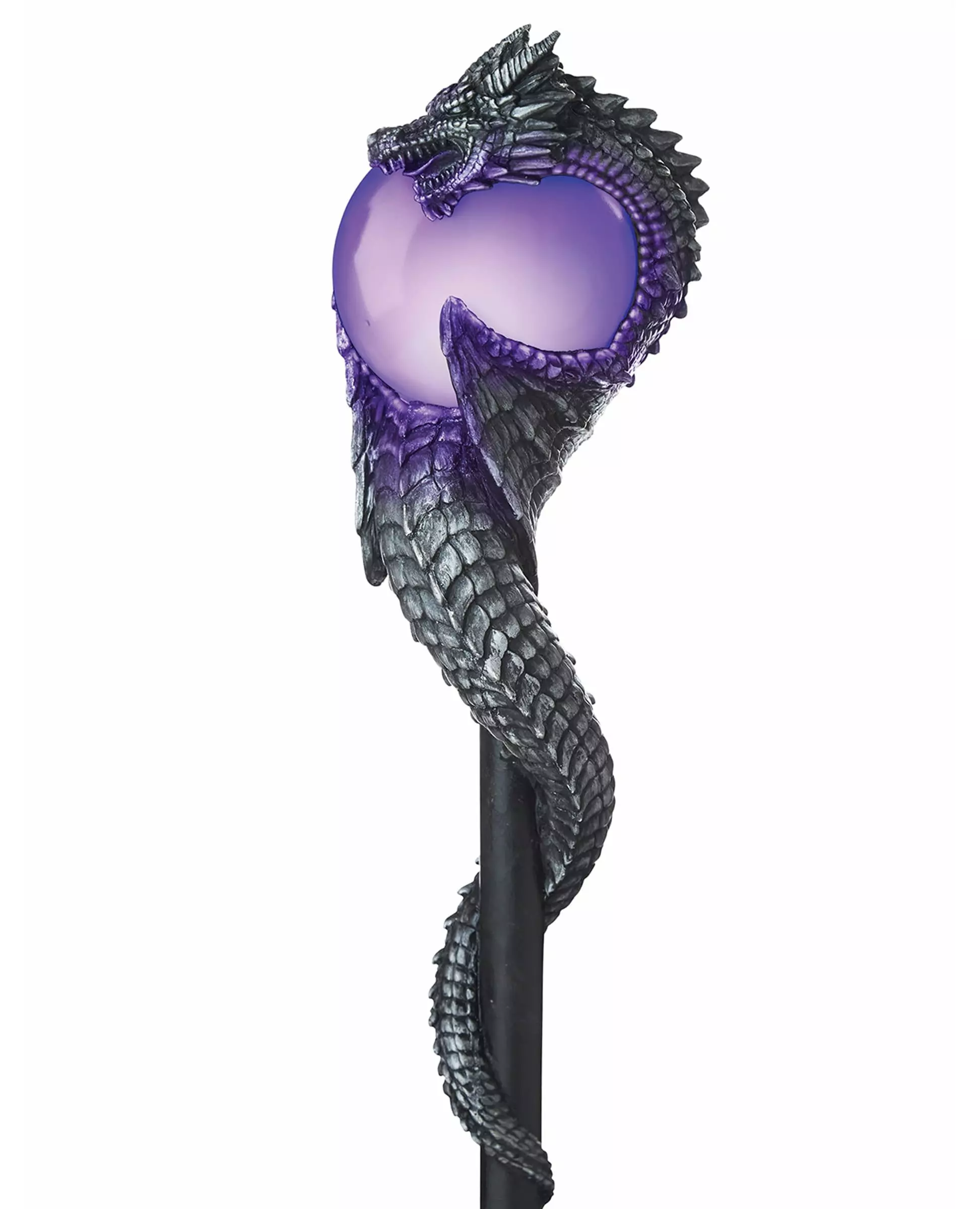 Bevæpn deg med tryllestaven din for å motvirke ondskapens krefter! Denne tryllestaven er for voksne. Den måler omtrent 165 centimeter og er delt inn i tre deler. Den lysende staven er helt svart, og stavens hode har en lilla edelsten med en sølvdrage rundt. Dragens hale slynger seg rundt staven. Bare trykk på knappen for å slå på de blinkende LED-lysene. Den fungerer med 2 AA-batterier (inkludert). Ta med denne staven til din neste kostymefest med magitema! Tilbehør inkludert: 3-delt pinne