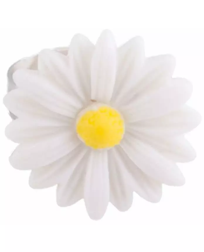 Jeg elsker deg ... litt ... Denne voksenringen er dekorert med en hvit plasttusenfryd med et gult hjerte. Ringen er i sølv. Med dette smykket kan du fullføre et blomsterprinsessekostyme eller et landlig hippiekostyme til neste karneval. Inkludert tilbehør: Ring