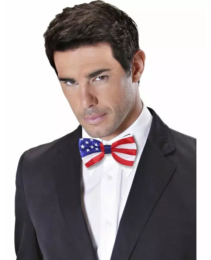 Gå inn i Onkel Sams sko! Denne sløyfen har det amerikanske flagget på trykk. Den passer under skjortekragen og festes med en plastklips. I tillegg passer den alle halsstørrelser siden den er justerbar. Dette tilbehøret vil pynte opp et kostyme på fester med amerikansk tema. Copyright Widmann SRL. Inkludert tilbehør: Sløyfe Materiale: 100 % polyester Pleie: Håndvask