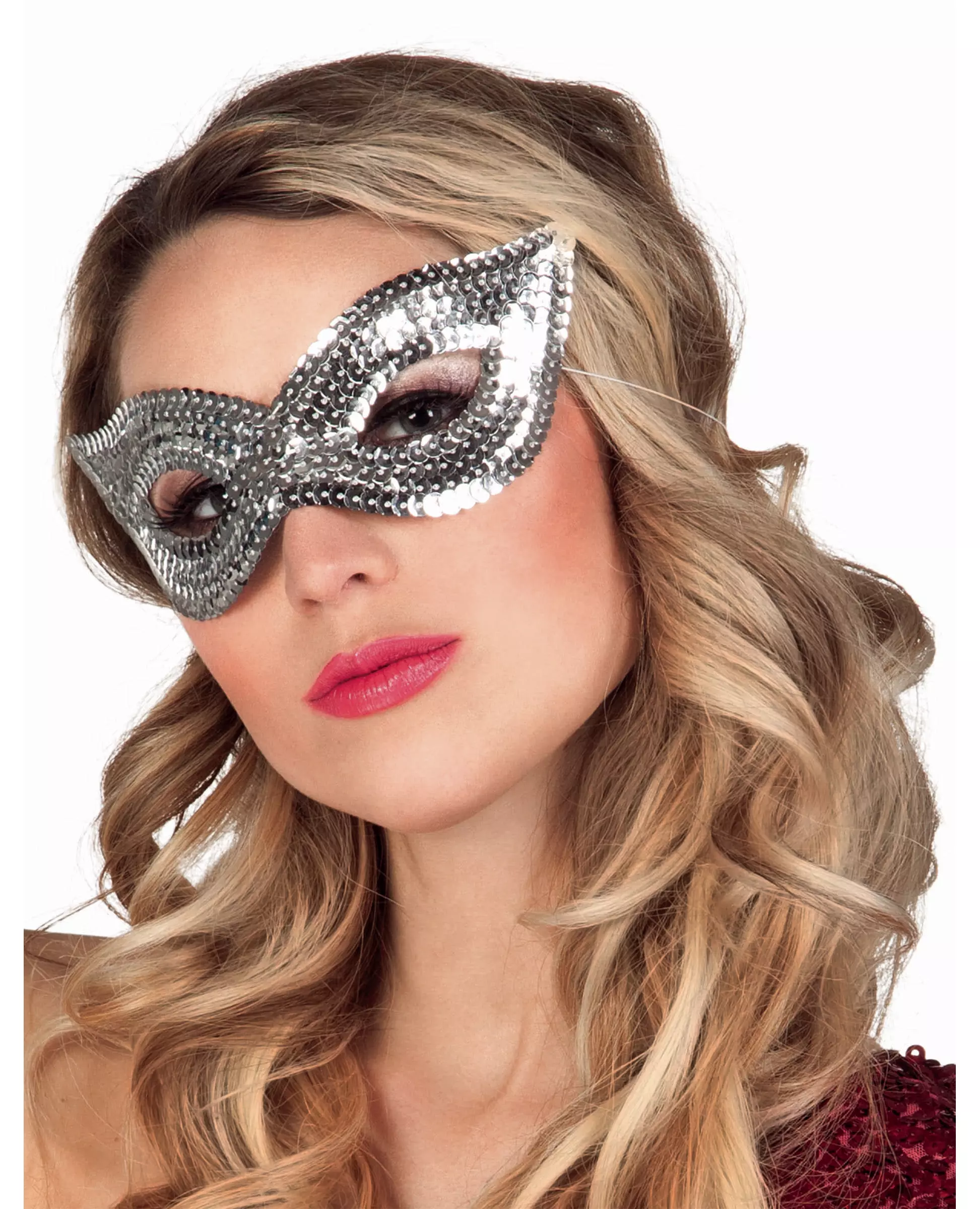 Til maskeradefesten! Denne praktfulle venetianske masken er laget av sølvfargede paljetter. En strikk lar deg holde masken på ansiktet. Den vil være perfekt for å fullføre et antrekk med rhinsten til nyttårsaften. Inkludert tilbehør: Maske, Materiale: paljetter,